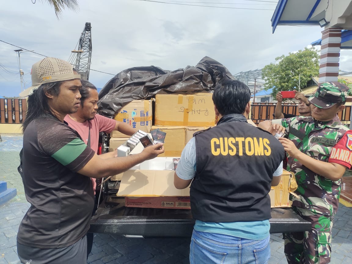 Dantim Bea Cukai Kantor Pengawasan dan Pelayanan Tipe Madya Pabean Tipe C Luwuk, Tomy Putra Wijaya S.T., menghubungi Danramil 1307-05 Ratolindo, Lettu Cke Risman, untuk meminta bantuan dalam penertiban rokok ilegal yang akan dikirim ke Kecamatan Una-Una dan Togean melalui kapal perintis KM. Gunung Bintan.