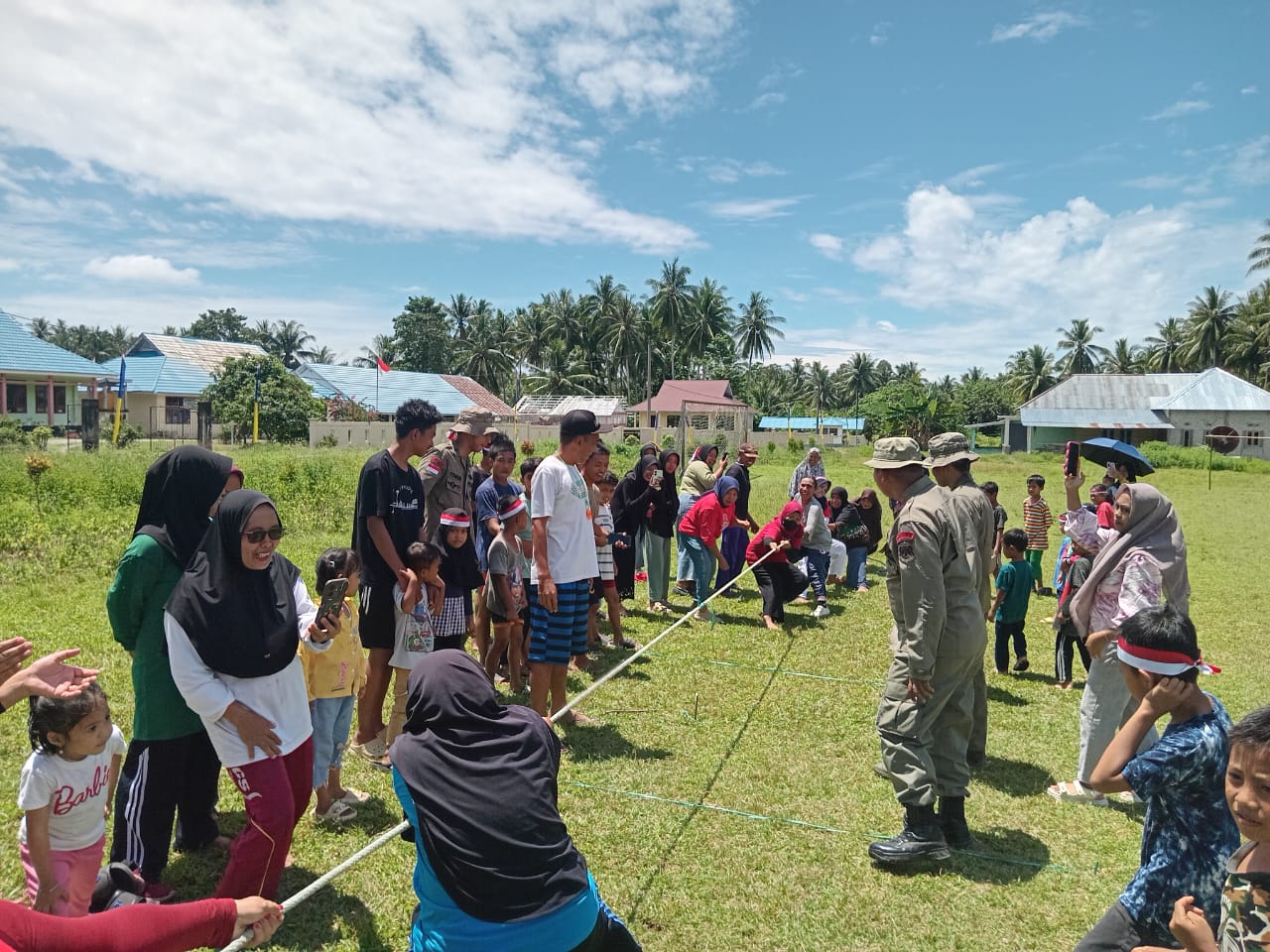 Selain itu, masukan benang dalam jarum sambil berjalan, masukan paku dalam botol, joget berebut kursi hingga tarik tambang sukses menarik perhatian warga sekitar.
