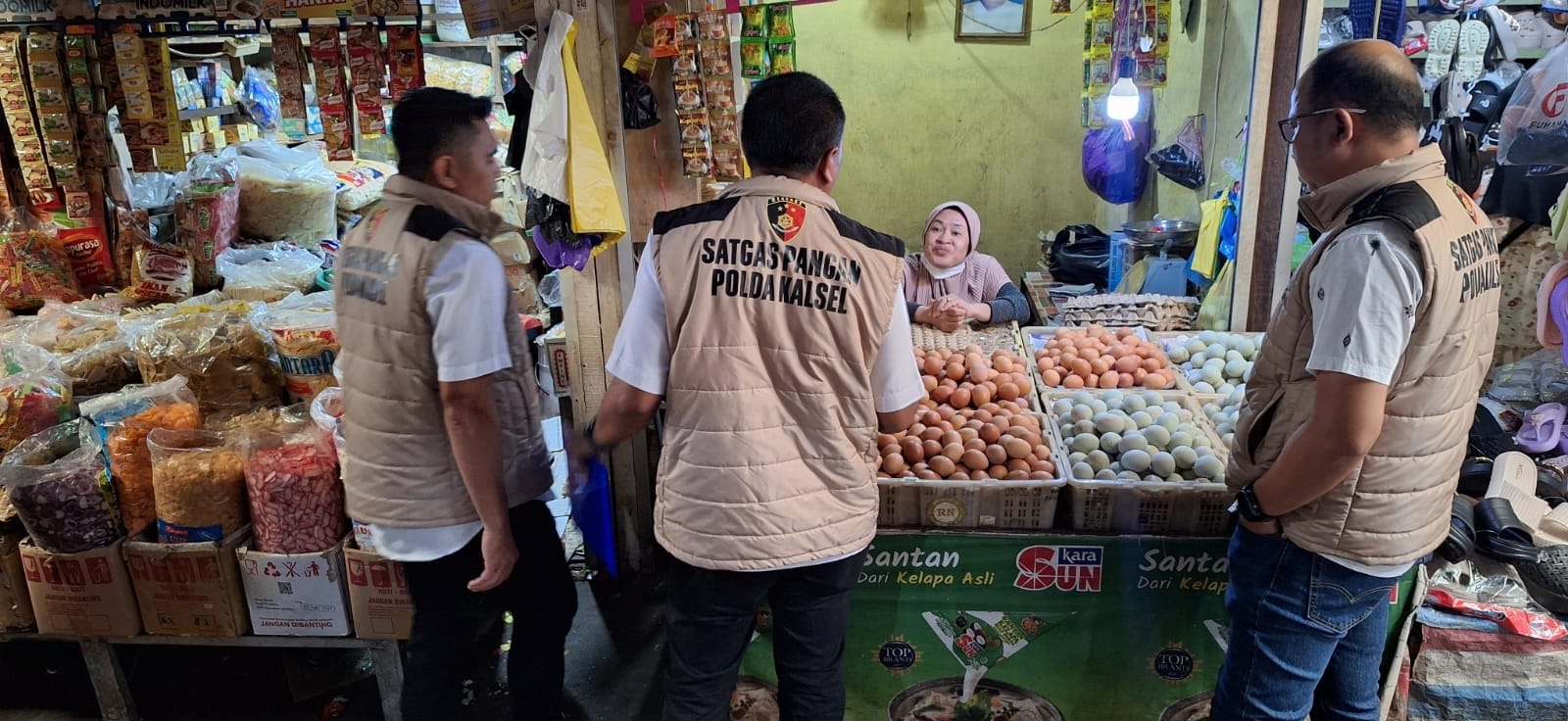 Guna mengawal stabilitas harga dan memastikan ketersediaan barang kebutuhan pokok dan barang penting (Bapokting), Satuan Tugas (Satgas) Pangan Direktorat Reskrimsus Polda Kalimantan Selatan melakukan inspeksi di Pasar Kalindo, Banjarmasin, pada Senin (27/10/2025).