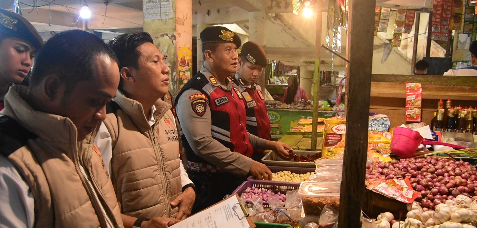 Satuan Tugas (Satgas) Pangan Polda Kalimantan Selatan (Kalsel) melakukan pengecekan harga dan ketersediaan barang kebutuhan pokok di Pasar Ahad Kertak Hanyar, Kabupaten Banjar, Senin (2/6/2025).