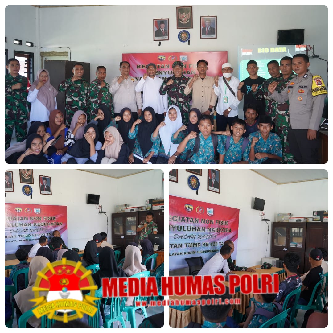 Satuan Tugas TMMD ke-123 Kodim 1628/Sumbawa Barat telah menunjukkan komitmennya tidak hanya dalam melaksanakan kegiatan sasaran fisik, tetapi juga memberikan perhatian kepada sasaran nonfisik, seperti penyuluhan Narkoba dan Kesehatan, penyuluhan ini merupakan bagian dari upaya pemerintah bersama TNI untuk mengantisipasi potensi penyalahgunaan narkotika dan obat berbahaya lainnya yang dapat merusak generasi muda dan masyarakat.