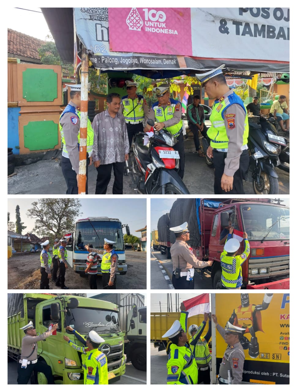 Kegiatan ini dilaksanakan dalam rangka menyemarakkan Hari Kemerdekaan Republik Indonesia ke-80. Dipimpin langsung oleh Kasat Lantas Polres Demak, AKP Thoriq Aziz, personel Satlantas Demak menyosialisasikan pentingnya semangat nasionalisme dengan mengajak masyarakat mengibarkan Bendera Merah Putih di rumah dan kendaraan mereka.