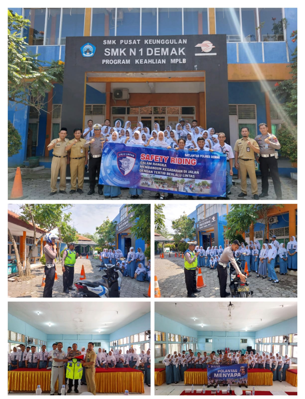 Dalam rangka memperingati Hari Lalu Lintas Bhayangkara ke-70 tahun 2025, Satuan Lalu Lintas (Satlantas) Polres Demak melaksanakan kegiatan sosialisasi tertib berlalu lintas dan pelatihan safety riding di SMK Negeri 1 Demak, Senin (15/9/2025).
