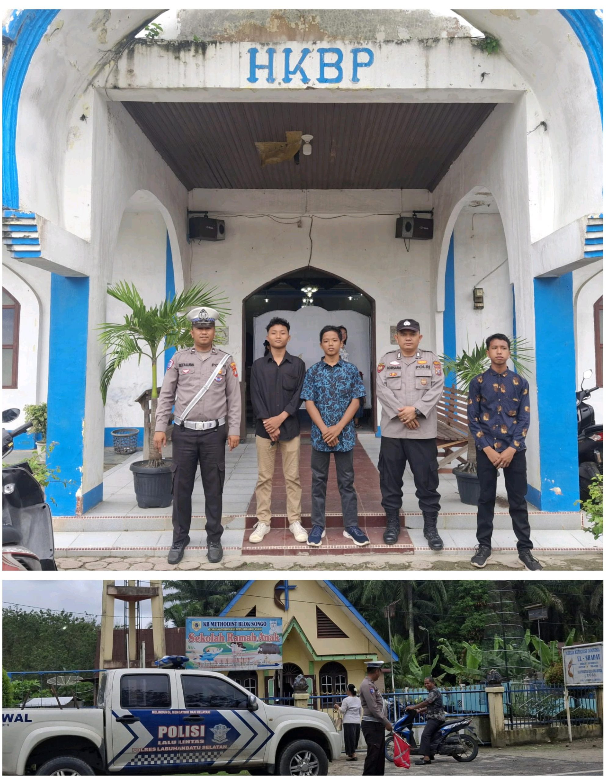 Satuan Lalu Lintas (Satlantas) Polres Labuhanbatu Selatan melaksanakan pengamanan dan pelayanan lalu lintas bagi jemaat yang mengikuti Ibadah Kebaktian Minggu di berbagai gereja dalam wilayah hukum Polres Labuhanbatu Selatan dalam rangka Operasi Keselamatan Toba 2025, Minggu (23/2/2025).