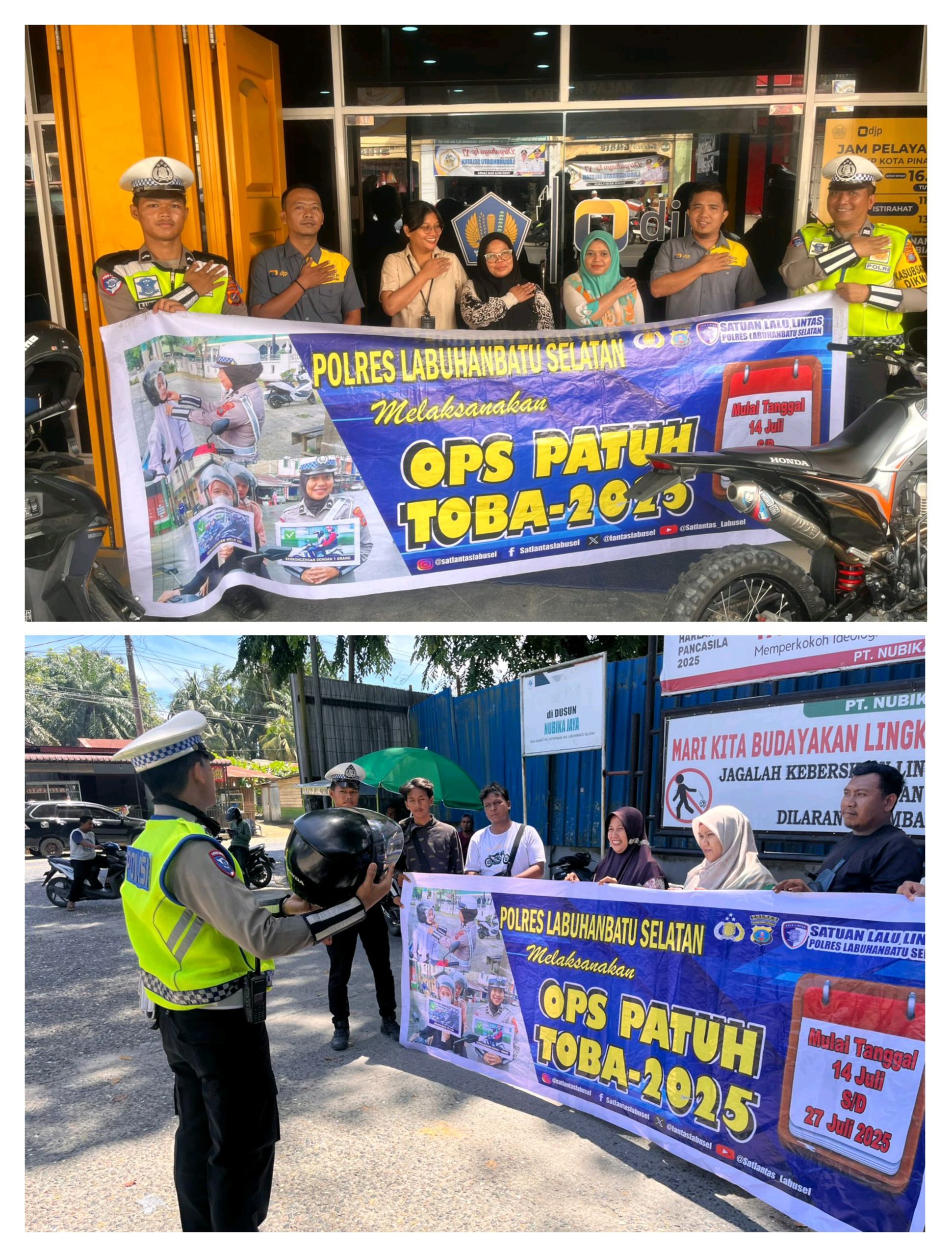 Dalam rangka Operasi Patuh Toba 2025, Satuan Lalu Lintas (Satlantas) Polres Labuhanbatu Selatan kembali melaksanakan kegiatan Pendidikan Masyarakat Lalu Lintas (Dikmas Lantas) di dua lokasi strategis, yaitu Kantor KP2KP Kotapinang dan PT. Nubika Jaya, Labuhanbatu Selatan pada Senin (21/7/2025) mulai pukul 09.00 WIB hingga selesai.