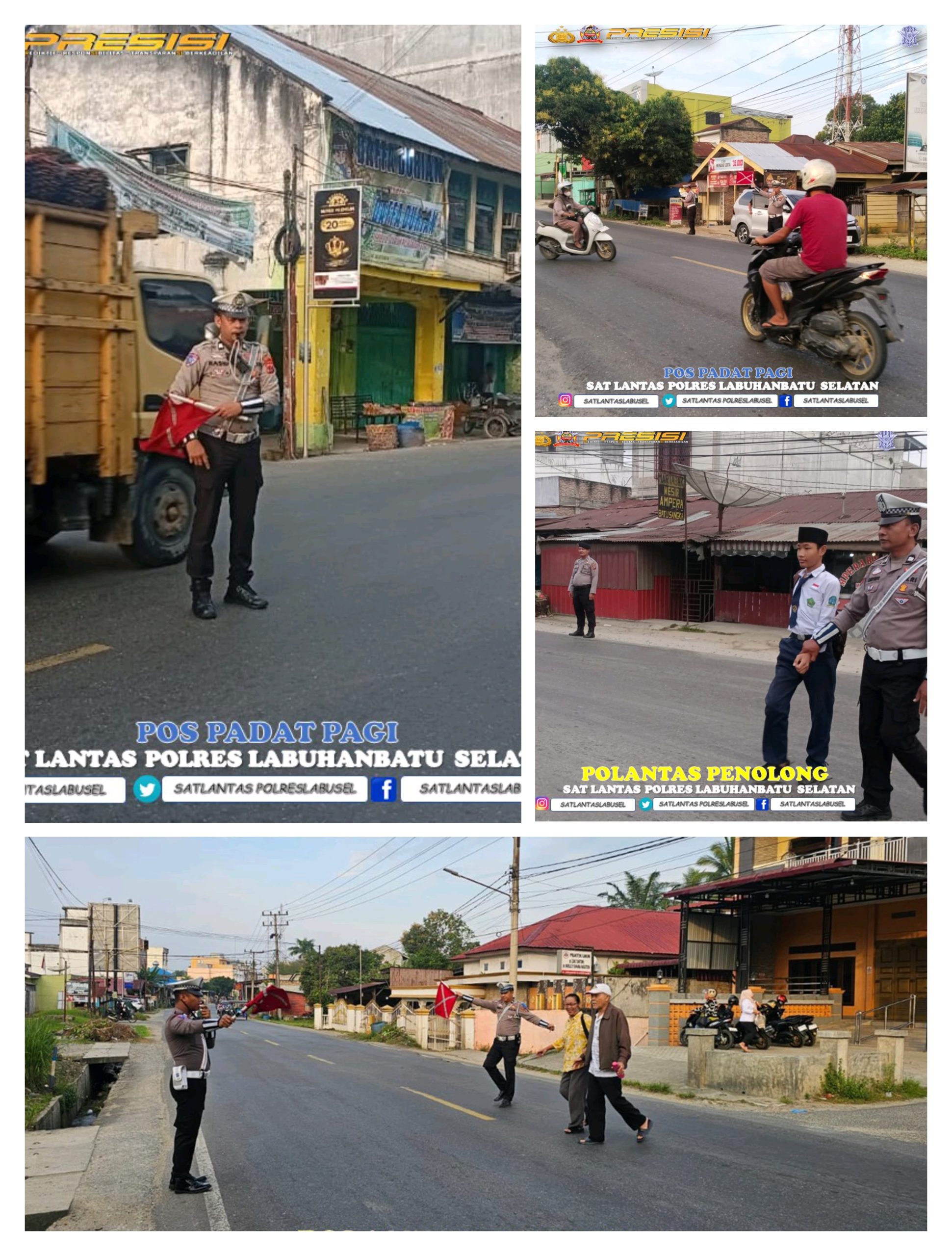 Personel Satuan Lalu Lintas (Satlantas) Polres Labuhanbatu Selatan terus berupaya memberikan pelayanan terbaik bagi masyarakat melalui kegiatan Pos Padat Pagi.