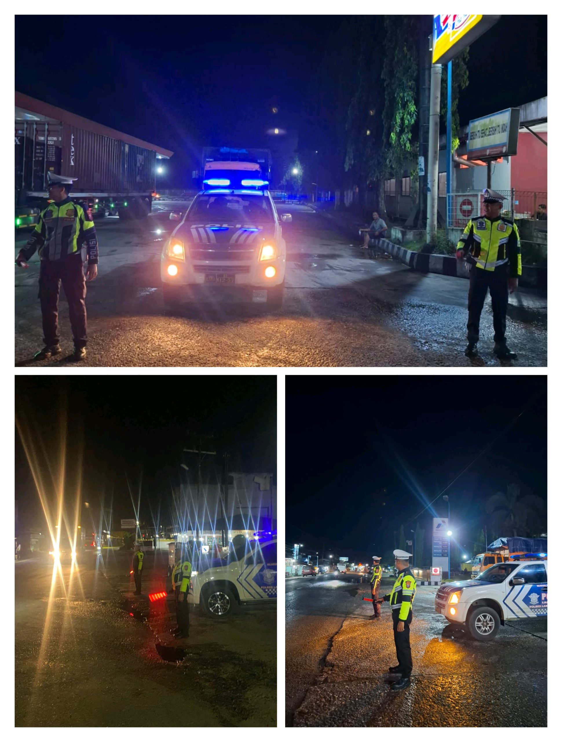 Patroli yang dimulai sejak malam hingga dini hari ini dilakukan secara mobile dengan menyalakan lampu rotator biru sebagai tanda kehadiran petugas di jalanan.