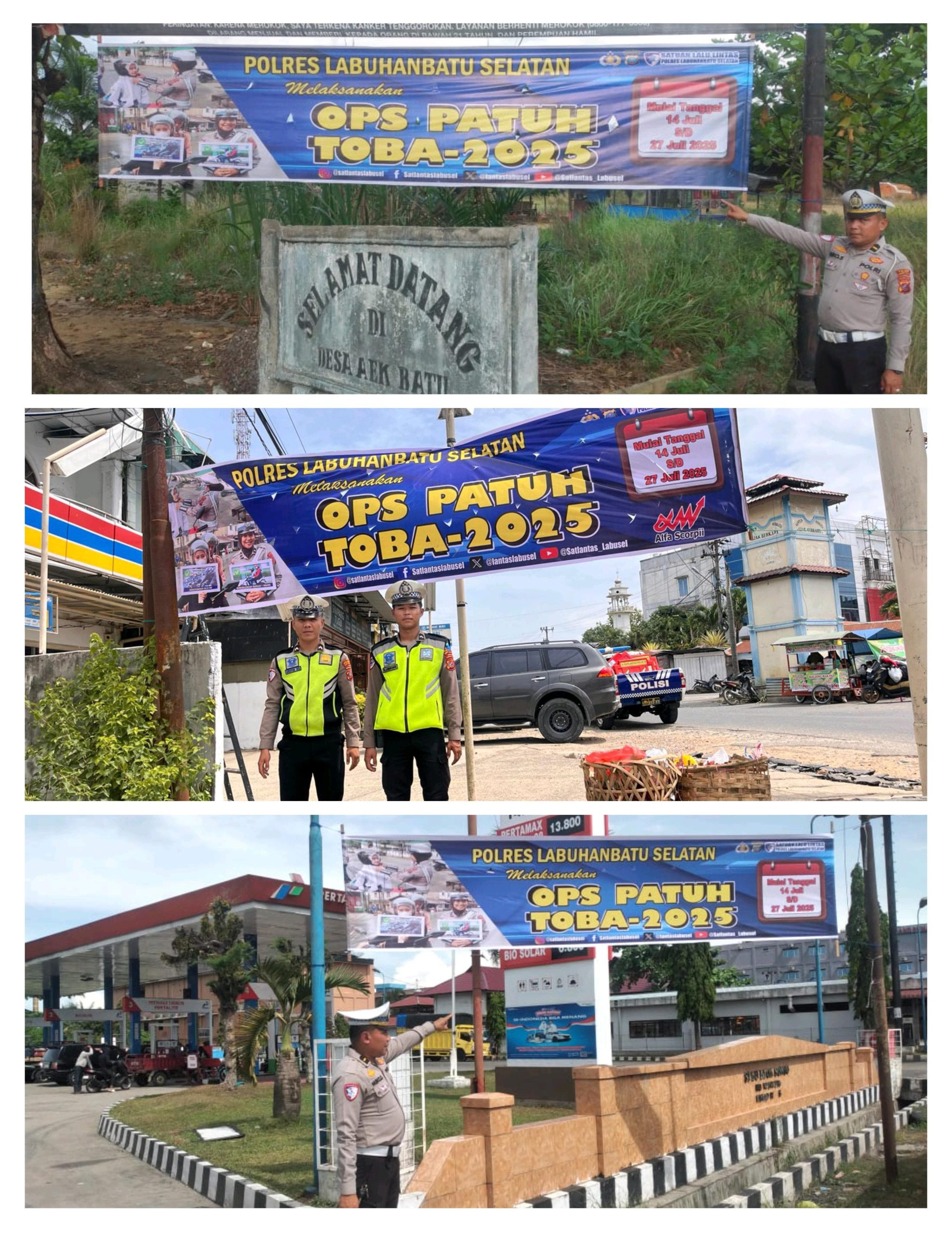 Dalam rangka Operasi Patuh Toba 2025, Satuan Lalu Lintas (Satlantas) Polres Labuhanbatu Selatan melaksanakan kegiatan pemasangan spanduk himbauan keselamatan berlalu lintas di sejumlah titik strategis, Kamis (17/7/2025).