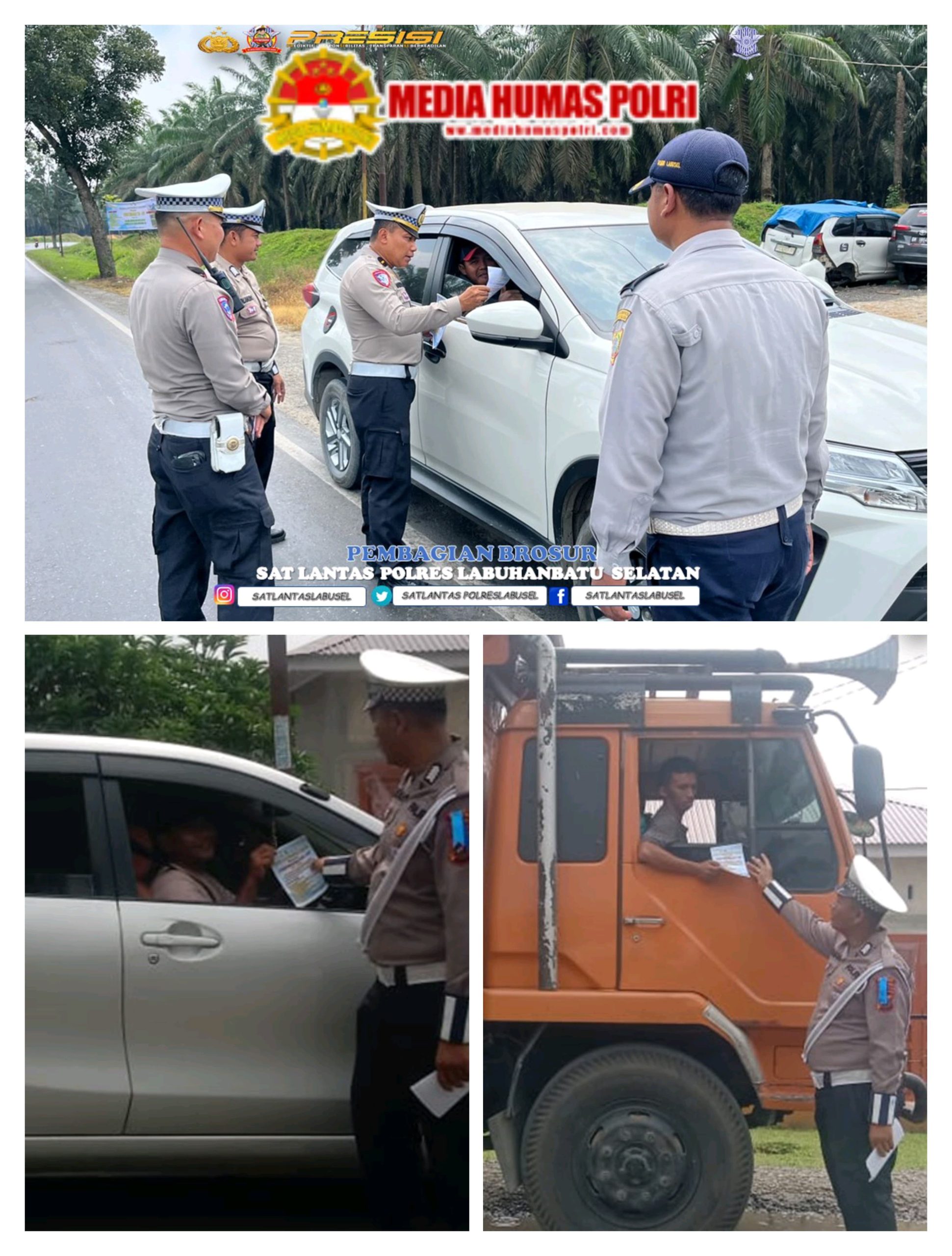 Satuan Lalu Lintas (Satlantas) Polres Labuhanbatu Selatan menggelar sosialisasi Operasi Keselamatan Toba 2025 dengan membagikan brosur kepada para pengendara.