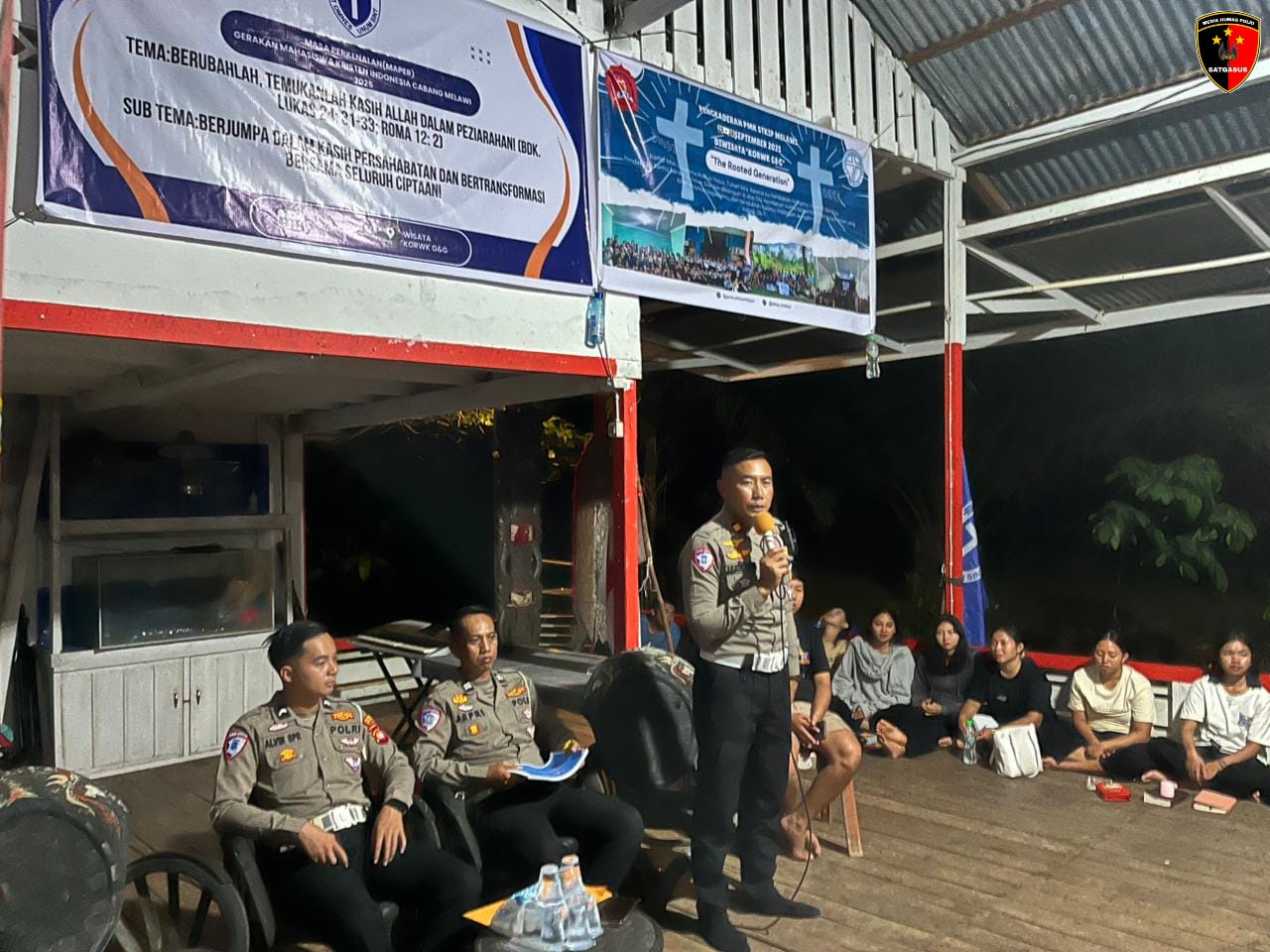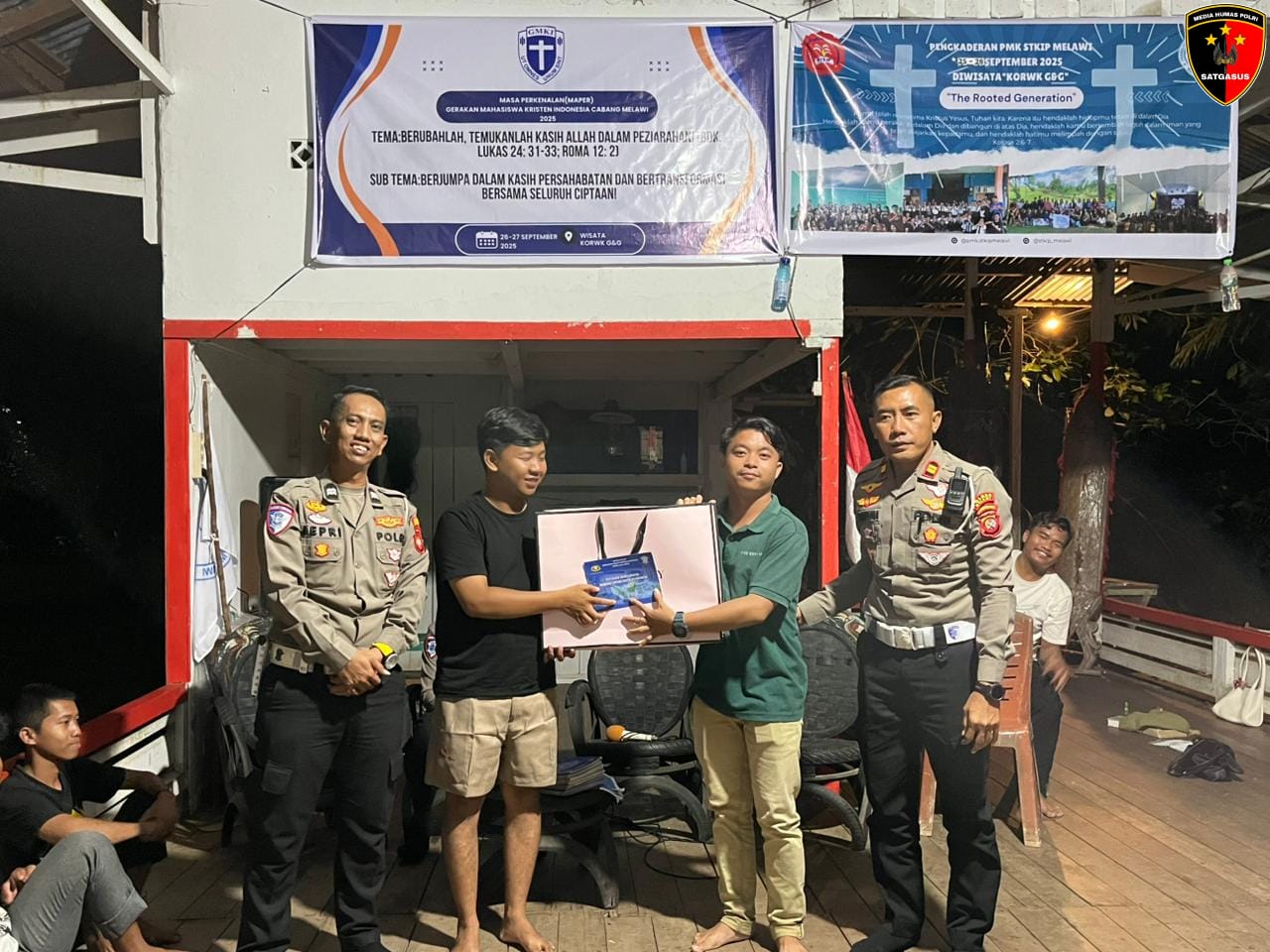 Kegiatan Pengkaderan Persekutuan Mahasiswa Kristen STKIP Melawi Tahun 2025 di Taman Wisata KORWK Nanga Pinoh diisi Satuan Lalu Lintas Polres Melawi dengan memberikan materi pembinaan dan pelatihan, Sabtu (27/9/25).