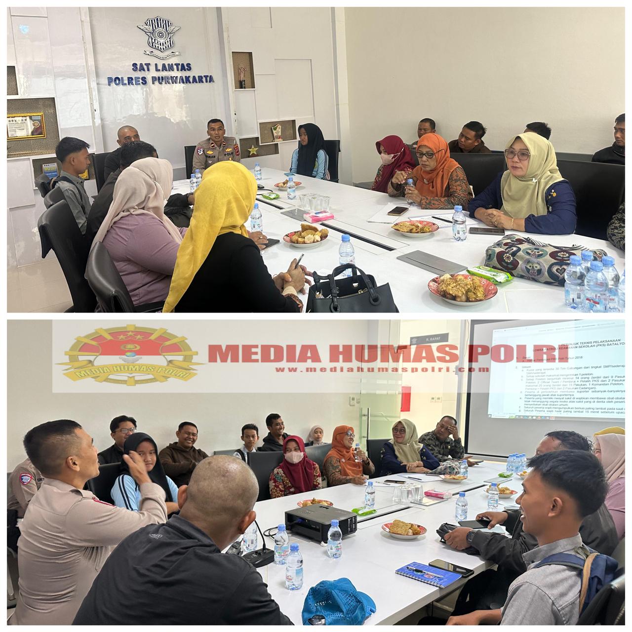 Jelang pelaksanaan lomba Baris Berbaris, 12 Gatur Lantas dan Senam Lantas Patroli Keamanan Sekolah (PKS) tingkat Polres Purwakarta, Sat Lantas Polres Purwakarta menggelar kegiatan technical meeting bersama Guru Pembina, Pelatih dan Purna PKS Batalyon Kiansantang Purwakarta, Pada Jumat, 16 Mei 2025.
