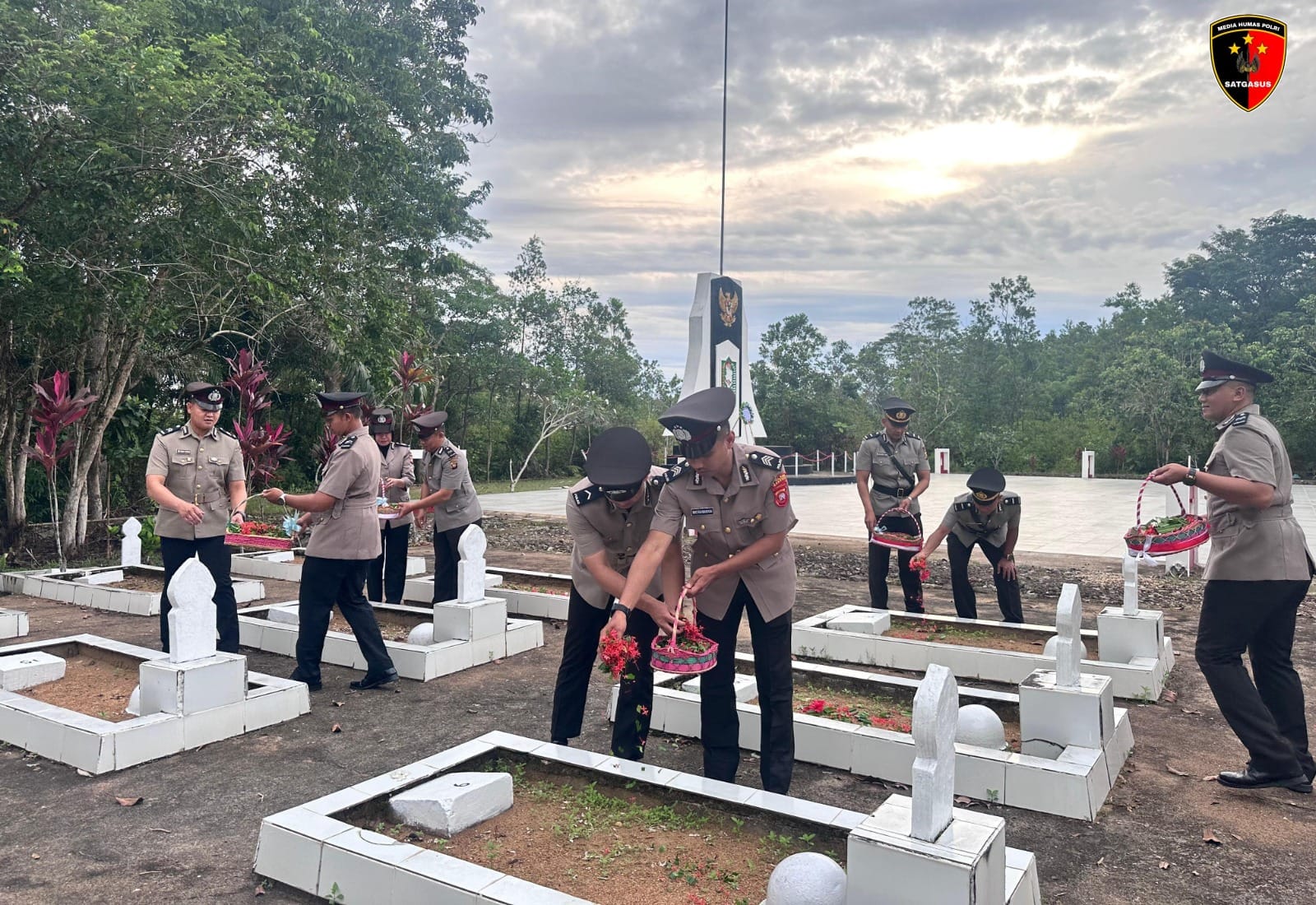 Ziarah dipimpin langsung oleh Kepala Satuan Lalu Lintas Polres Sanggau, AKP Bunga Tri Yulitasari, S.Tr.K., S.I.K., M.H., yang hadir bersama jajaran personel Satlantas. Rangkaian acara dilaksanakan dengan khidmat, diawali dengan upacara penghormatan kepada para pahlawan bangsa, dilanjutkan dengan prosesi tabur bunga di pusara.