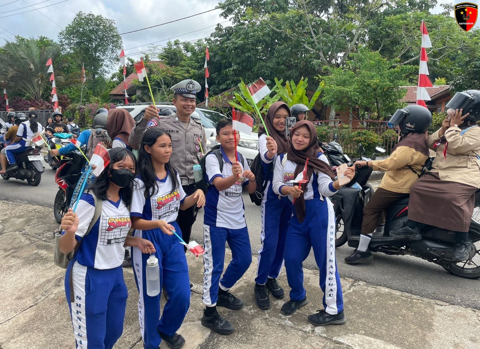 Dengan mengusung tema “Bersatu, Berdaulat, Rakyat Sejahtera, Indonesia Maju”, kegiatan ini juga menjadi momentum untuk menumbuhkan rasa kebersamaan antara Polantas dan masyarakat. Tidak sekadar membagikan atribut, namun sebagai sarana edukasi dan penguatan nilai-nilai kebangsaan.