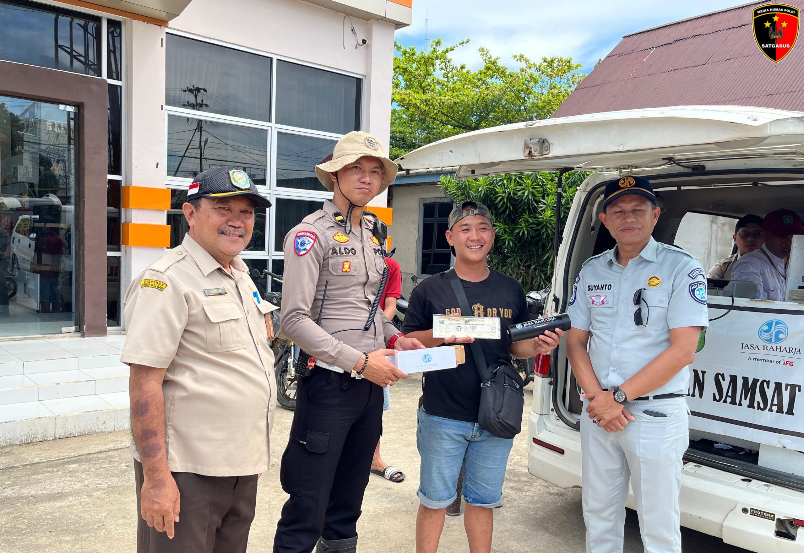 Menariknya, dalam kegiatan ini, pihak Jasa Raharja membagikan tumbler kepada pengendara yang tertib dan telah melunasi pajak kendaraannya sebagai bentuk apresiasi.