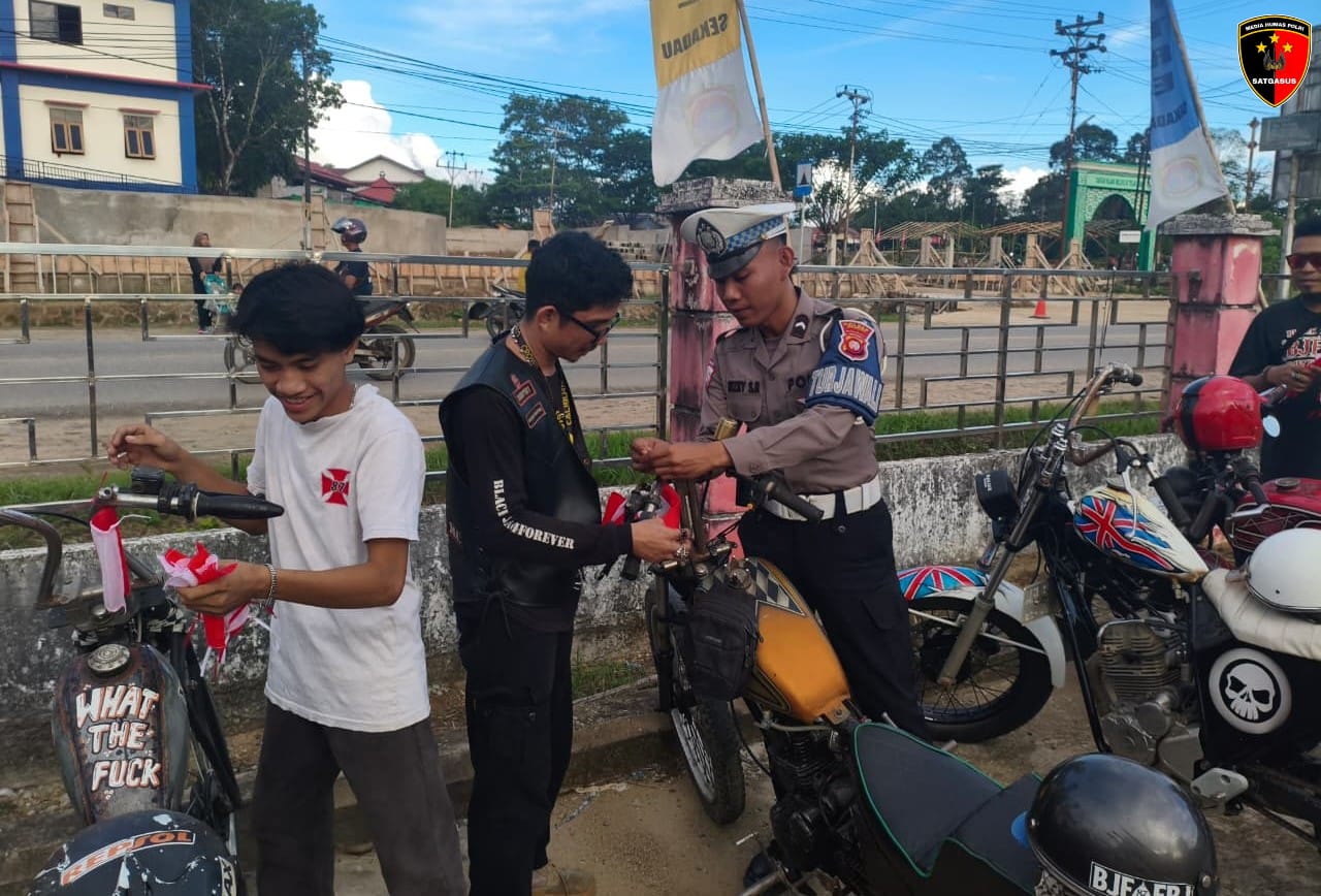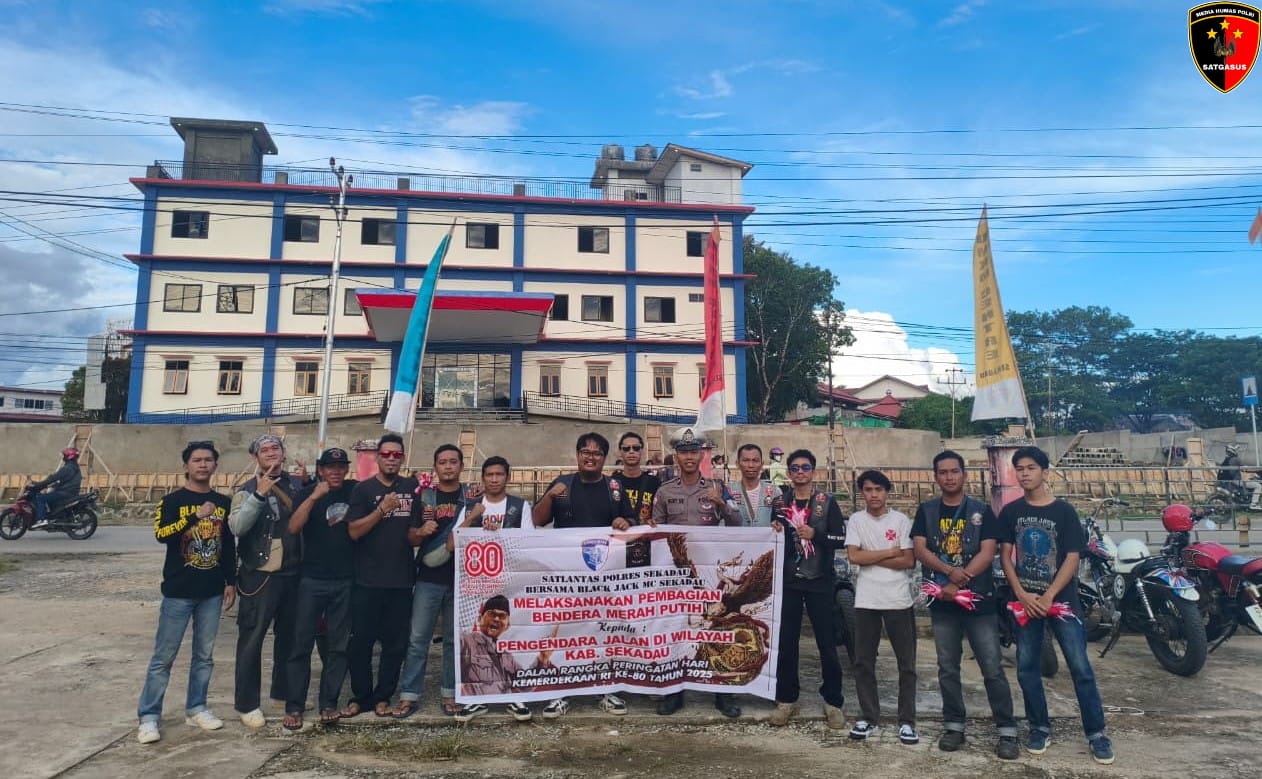 Satlantas Polres Sekadau Gandeng Black Jack MC Bagikan 100 Bendera Merah Putih