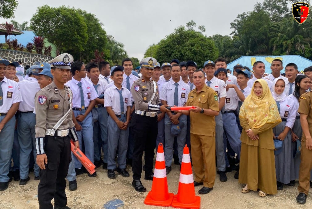 Satlantas Polres Sekadau Serahkan Traffic Cone dan Lampu Lalin untuk Edukasi Pelajar