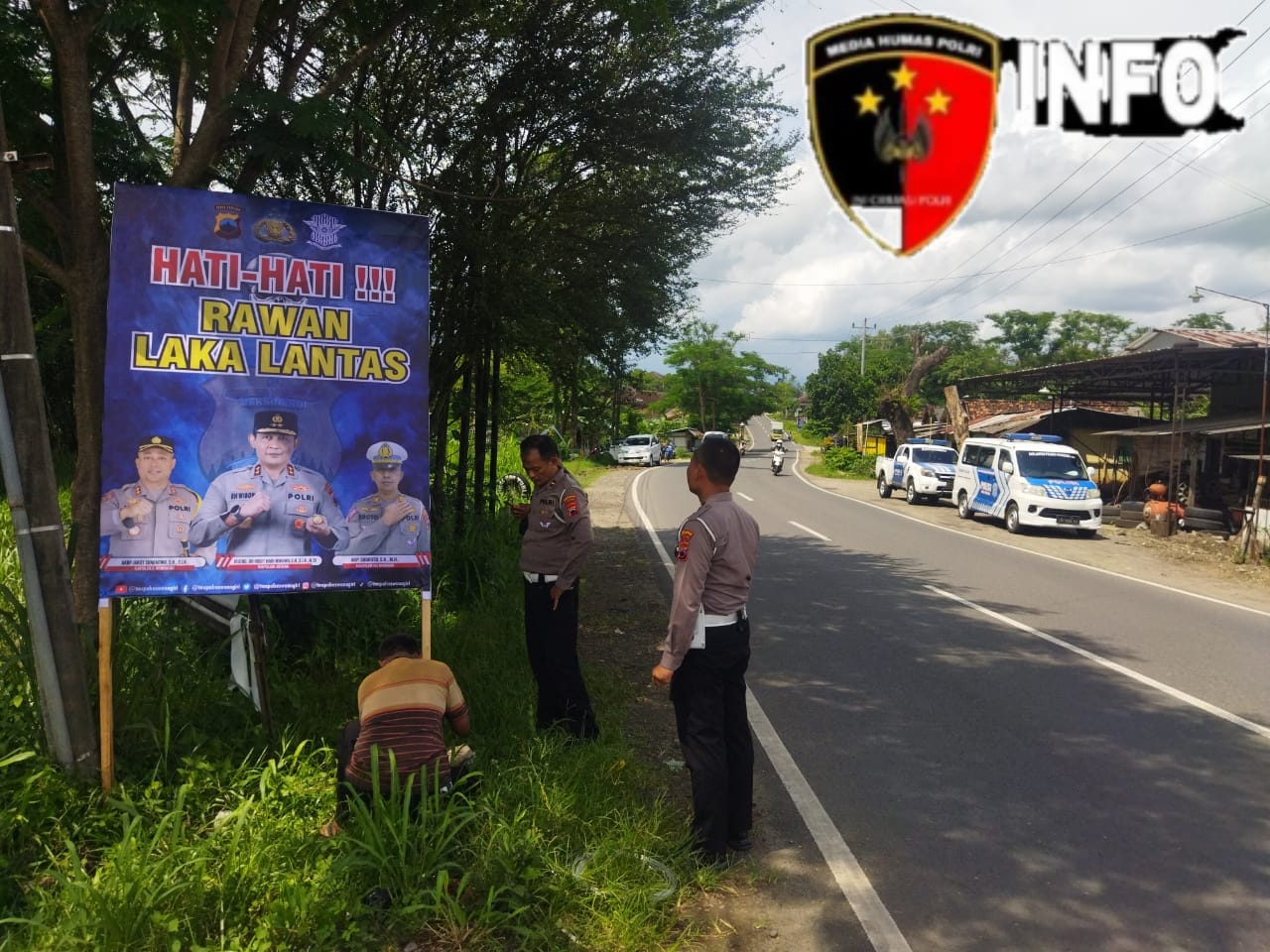 Pemasangan papan himbauan keselamatan dilakukan oleh Satlantas Polres Wonogiri dipimpin oleh Kanit kamsel Satlantas Polres Wonogiri, melibatkan beberapa perwira dan anggota Satlantas Polres Wonogiri. (Zaenal MHP)