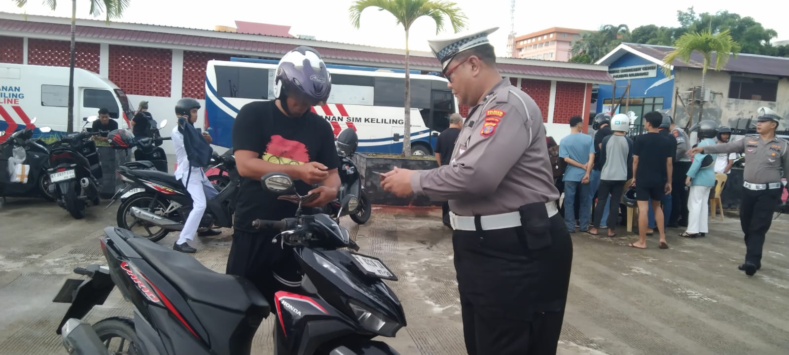 Pemeriksaan mencakup kelengkapan administrasi, kepatuhan pada aturan helm dan sabuk keselamatan, kondisi kendaraan, serta potensi pelanggaran lainnya.