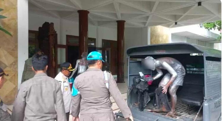 Satpol PP Kabupaten Bojonegoro melalui Kasi Opsdal dan Anggota regu patroli bersama anggota regu khusus berhasil mengamankan 5 pengamen yang terdiri dari pengamen biasa, manusia silver dan badut.