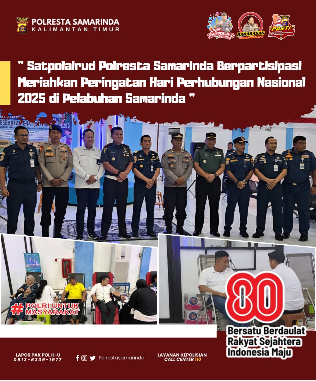 Semarak peringatan Hari Perhubungan Nasional (Harhubnas) 2025 turut dirasakan di Kota Samarinda. Kantor Kesyahbandaran dan Otoritas Pelabuhan (KSOP) Kelas I Samarinda menggelar rangkaian kegiatan sosial berupa pemeriksaan kesehatan gratis dan donor darah di Pelabuhan Samarinda, Jalan Yos Sudarso, Senin (15/9).
