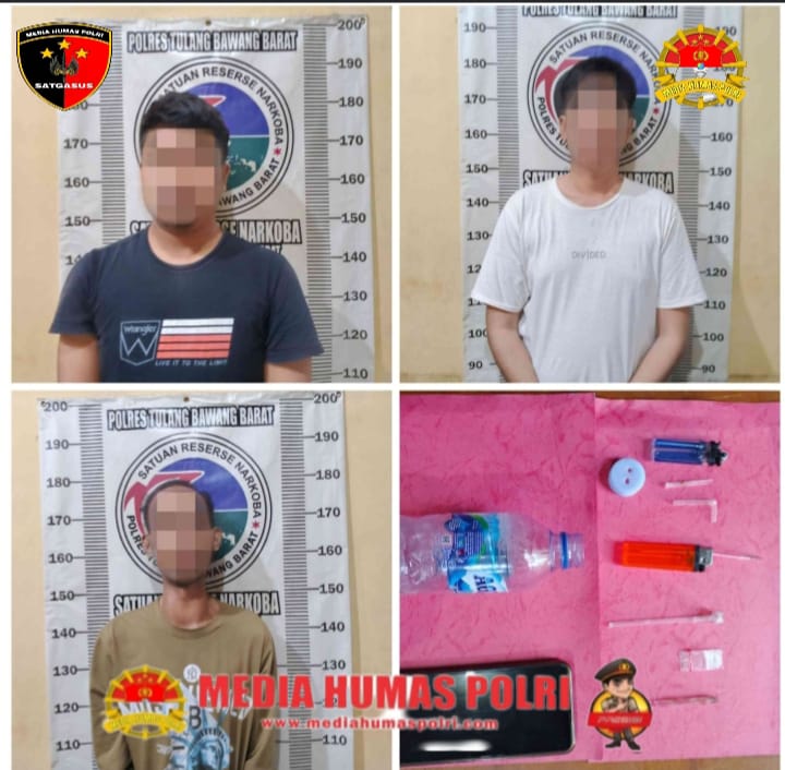 Satuan Reserse Narkoba (Satresnarkoba) Polres Tulang Bawang Barat, Polda Lampung berhasil mengamankan 3 (tiga) orang laki-laki yang diduga terlibat dalam penyalahgunaan narkotika jenis sabu, Penangkapan berlangsung pada hari Selasa,Tanggal 2 September 2025 sekira pukul 15.00 WIB, di sebuah rumah kontrakan di Tiyuh Pulung Kencana, Kecamatan Tulang Bawang Tengah, Kabupaten Tulang Bawang Barat.