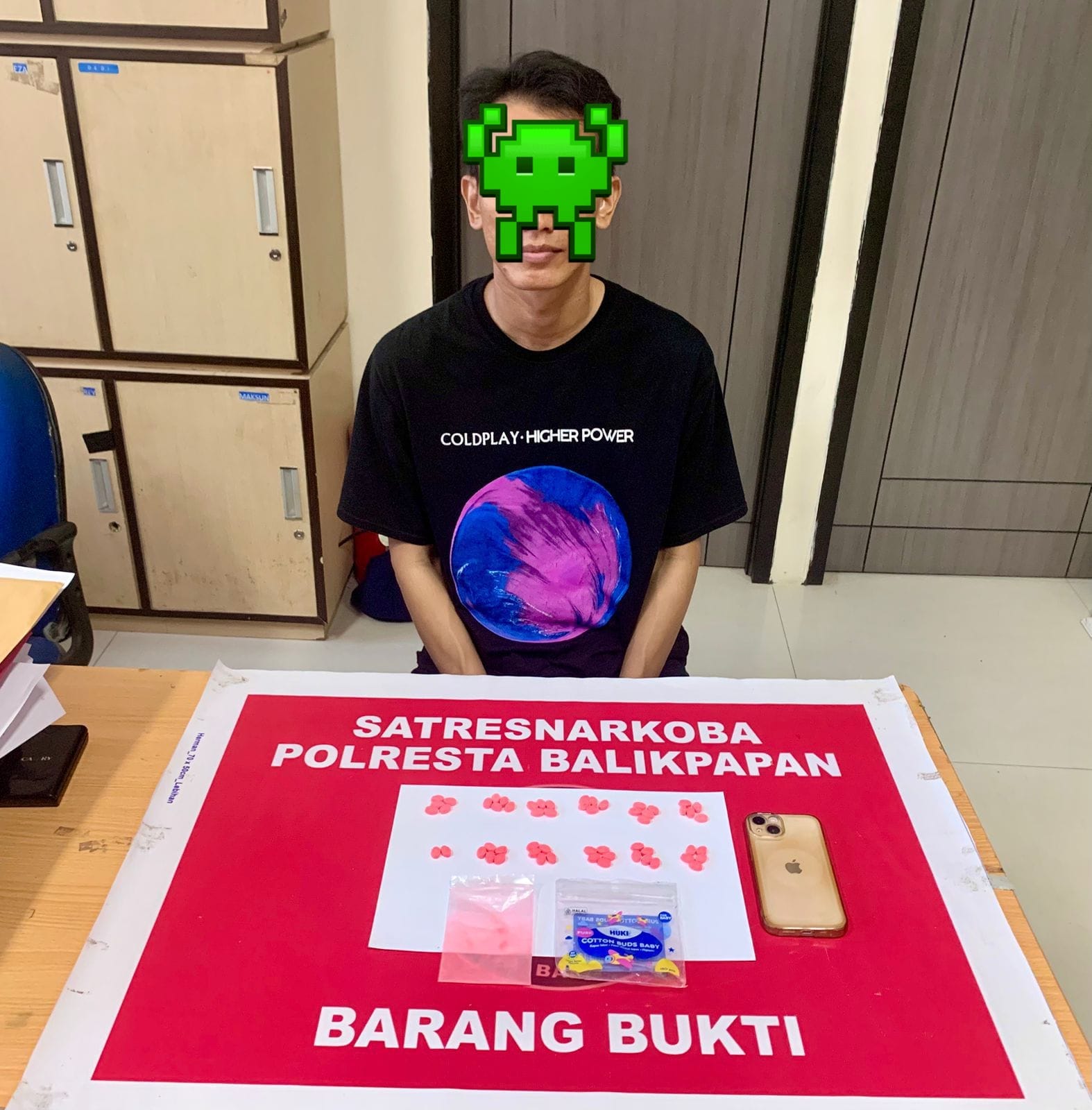 Satuan Reserse Narkoba (Satresnarkoba) Polresta Balikpapan kembali berhasil mengungkap kasus peredaran gelap dan penyalahgunaan narkotika golongan I jenis ekstasi di wilayah hukumnya. Berdasarkan informasi dari masyarakat, tim opsnal Satresnarkoba melakukan penangkapan terhadap seorang tersangka berinisial AA (26) di Jalan Abdi Praja VII, Kelurahan Sepinggan, Kecamatan Balikpapan Selatan.