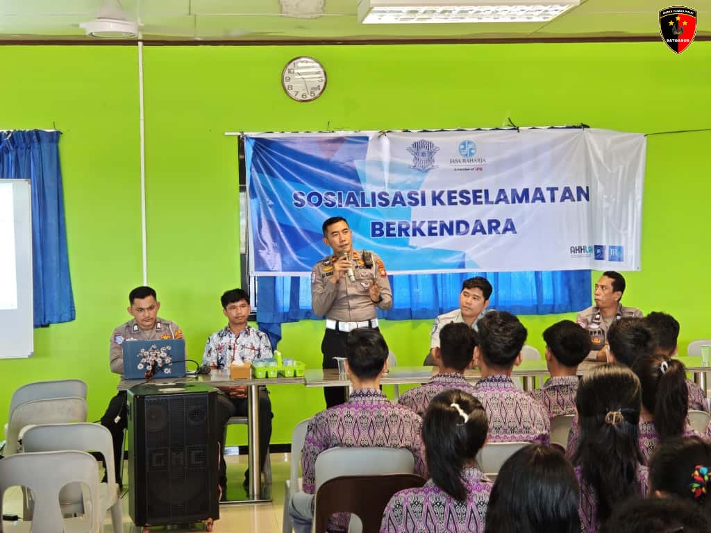 Mensosialisasikan Keselamatan Berkendara di lingkungan sekolah terus di lakukan Satua Lalu Lintas Polres Melawi dalam program Police Goes To School di Yayasan Sungai Kehidupan Borneo Kecamatan Pinoh Selatan, Selasa (28/10/25)