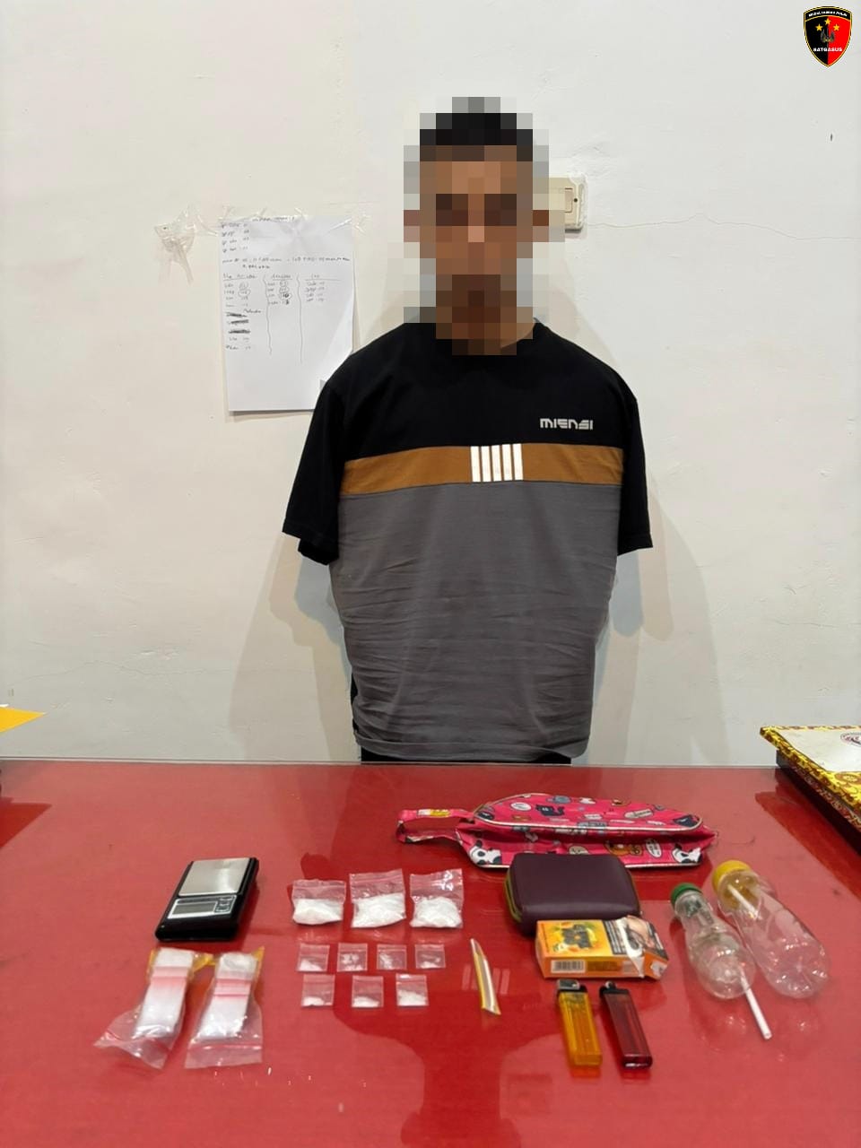 Satuan Reserse Narkoba Polres Ketapang mengamankan seorang pria, EW (28), Warga Desa Pesaguan Kanan Kecamatan Matan Hilir Selatan yang diduga merupakan pengedar narkoba di wilayah Kecamatan Matan Hilir Selatan Kabupaten Ketapang pada Rabu (08/10/2025) Pukul 21.30 Wib. EW diamankan di dalam rumahnya yang berlokasi di Desa Pesaguan Kanan Kecamatan Matan Hilir Selatan. Tak hanya pelaku, Petugas juga mengamankan sejumlah barang bukti dari tangan pelaku termasuk narkoba jenis sabu dengan berat mencapai 31,93 Gram Brutto.