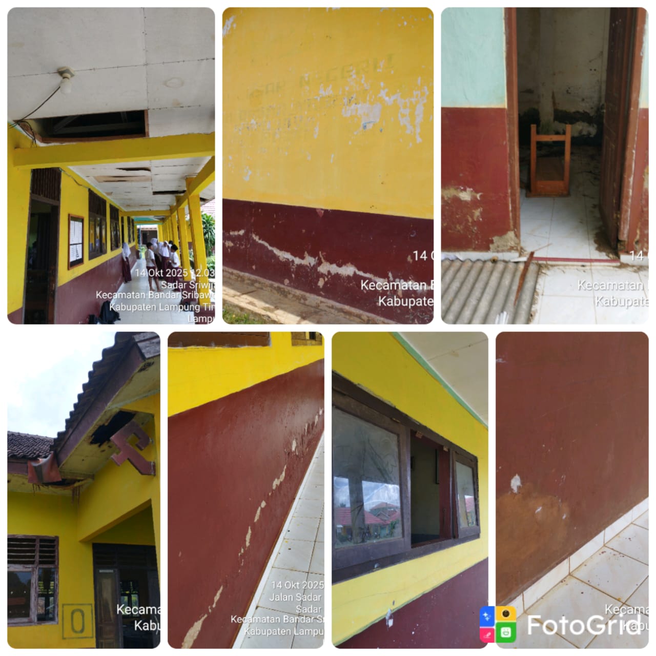 Berdasarkan pantauan tim media di lokasi, sejumlah bangunan sekolah ditemukan dalam kondisi rusak parah dan memprihatinkan. Beberapa bagian tembok tampak mengelupas dan berjamur, kusen jendela tidak ada, plafon teras jebol, dan gedung perpustakaan terlihat tidak terawat serta rusak berat.