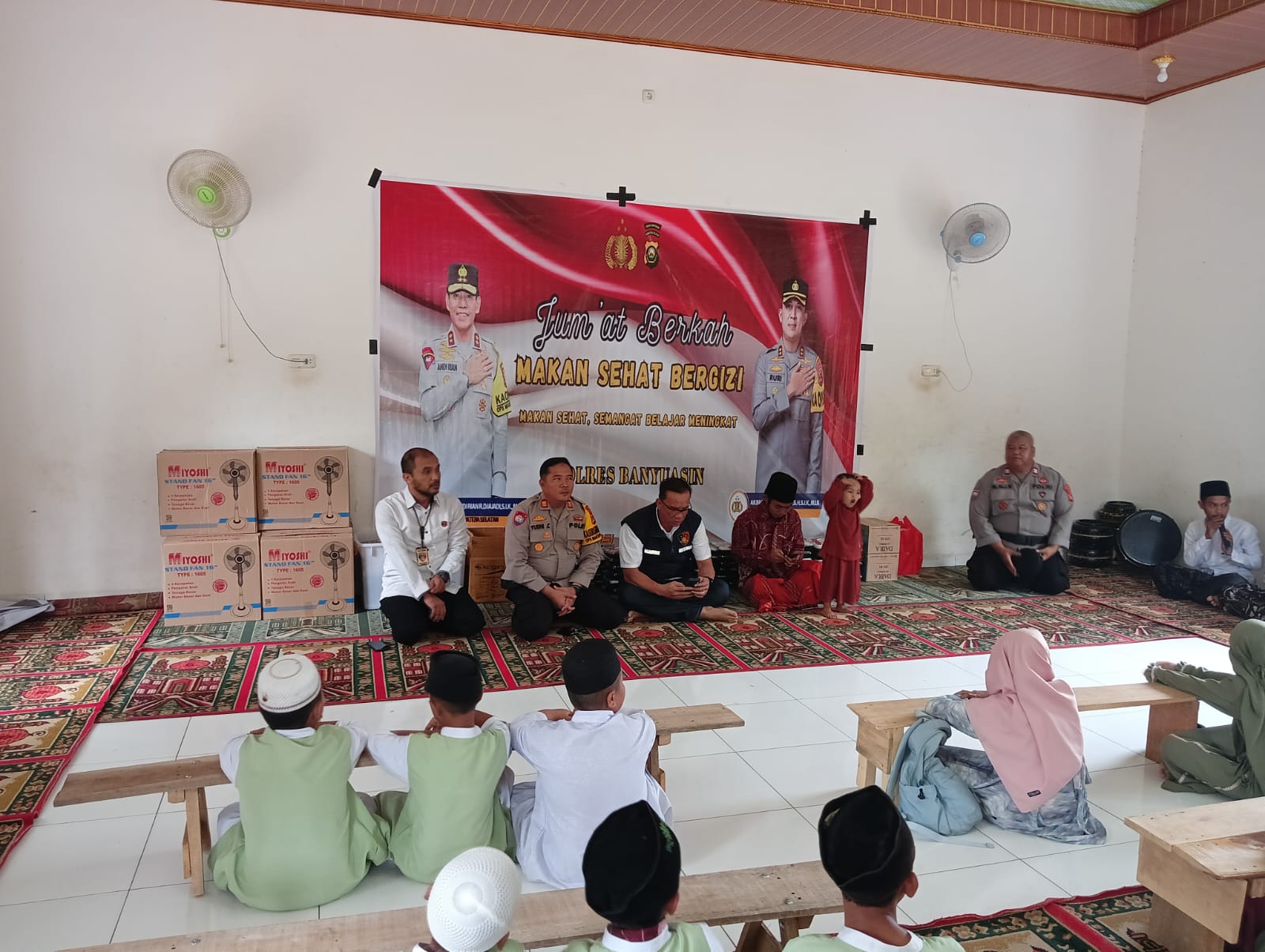 Kapolres Banyuasin AKBP Ruri Prastowo SH SIK MIK, melalui Kasat Narkoba AKP Najamudin SH mengatakan bahwa Jumat berkah makan sehat bergizi dibagikan kepada 70 Santri Ponpes Raudhatul Jannah Kelurahan Satrio Kecamatan Banyuasin III.