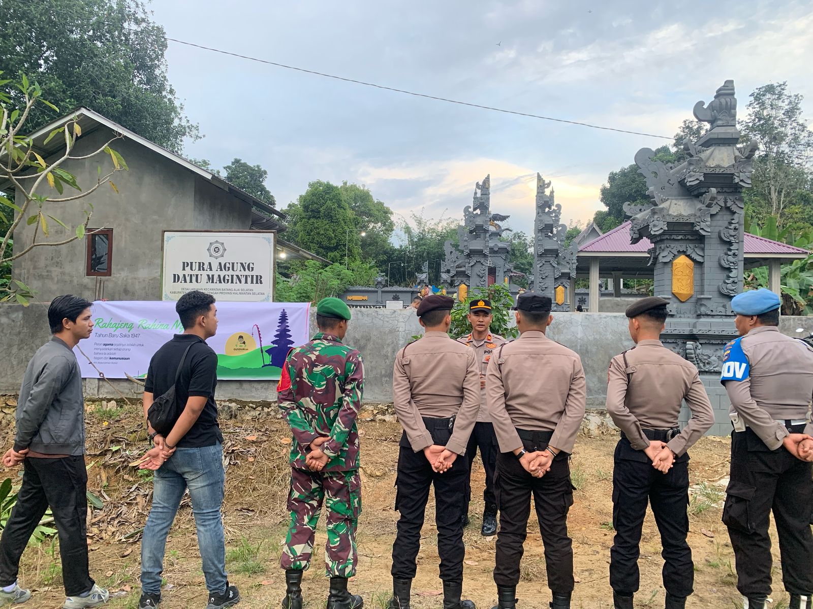 Sebanyak 8 personel gabungan dari Kodim 1002/HST dan Polres HST melaksanakan pengamanan ibadah Tilem umat Hindu di Pura Agung Datu Magintir, Desa Labuhan, Kecamatan Batang Alai Selatan, Kabupaten Hulu Sungai Tengah (HST), Kalimantan Selatan pada Jumat (28/3/2025) sore.