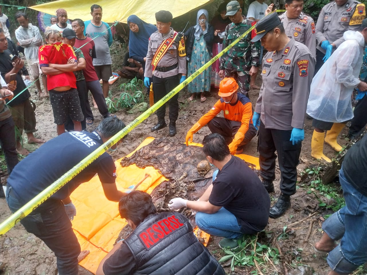 Tak butuh waktu lama, tim dari Polsek Purwantoro bersama perangkat desa langsung menuju lokasi untuk melakukan pemeriksaan. Di sekitar kerangka ditemukan kain jarik dan pakaian yang masih melekat, yang kemudian dikenali oleh keluarga sebagai milik Sdri. Sarmi (95), warga Desa Bakalan Kecamatan Purwantoro Kabupaten Wonogiri.