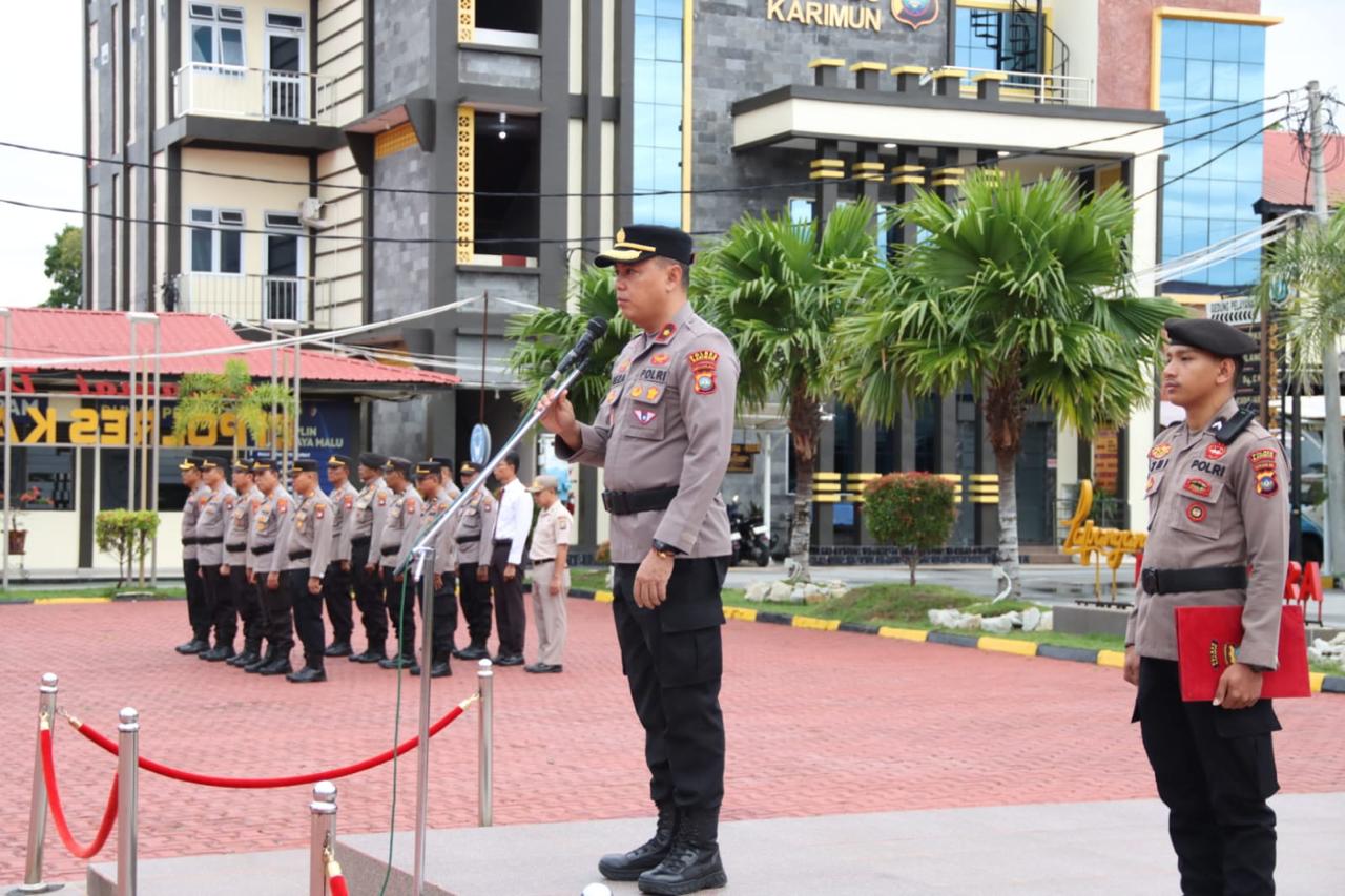 “Melalui momen ini kita tingkatkan kedisiplinan, loyalitas, dan pengabdian demi institusi dan masyarakat, pesan Wakapolres dalam amanatnya (Dedy).