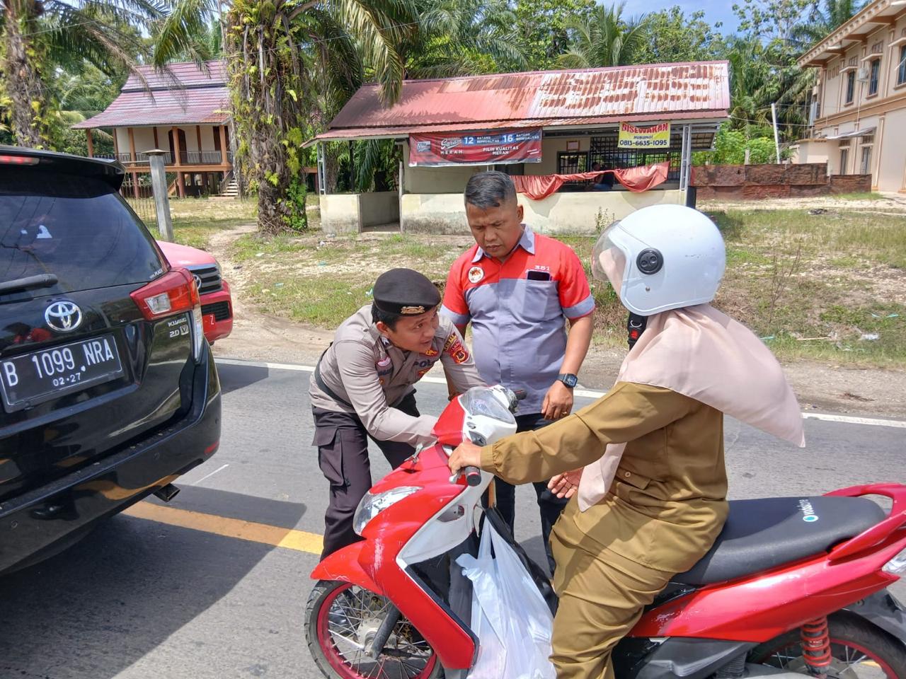 Satuan Intelkam (Sat Intel) Polres Sarolangun membagikan bendera merah putih kepada pengendera dalam rangka menyambut Dirgahayu Kemerdekaan Indonesia (RI) ke-80 Tahun 2025.