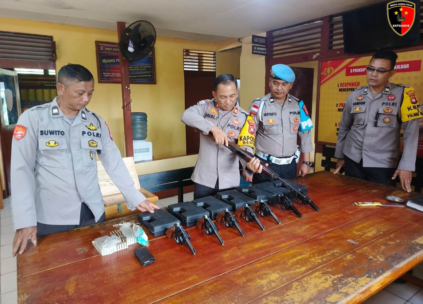 Pengecekan tersebut dipimpin langsung oleh Kapolsek Beduai, AKP Heri Triyana, SH yang turut didampingi Kanit Propam Aiptu Saryanto, Kasium Aiptu Suwito, serta Kanit Intelkam Aipda Fitrio Dwi P. Tim melakukan pemeriksaan menyeluruh terhadap kondisi fisik senjata, kelayakan fungsi, serta kecocokan jumlah amunisi sesuai data inventaris.