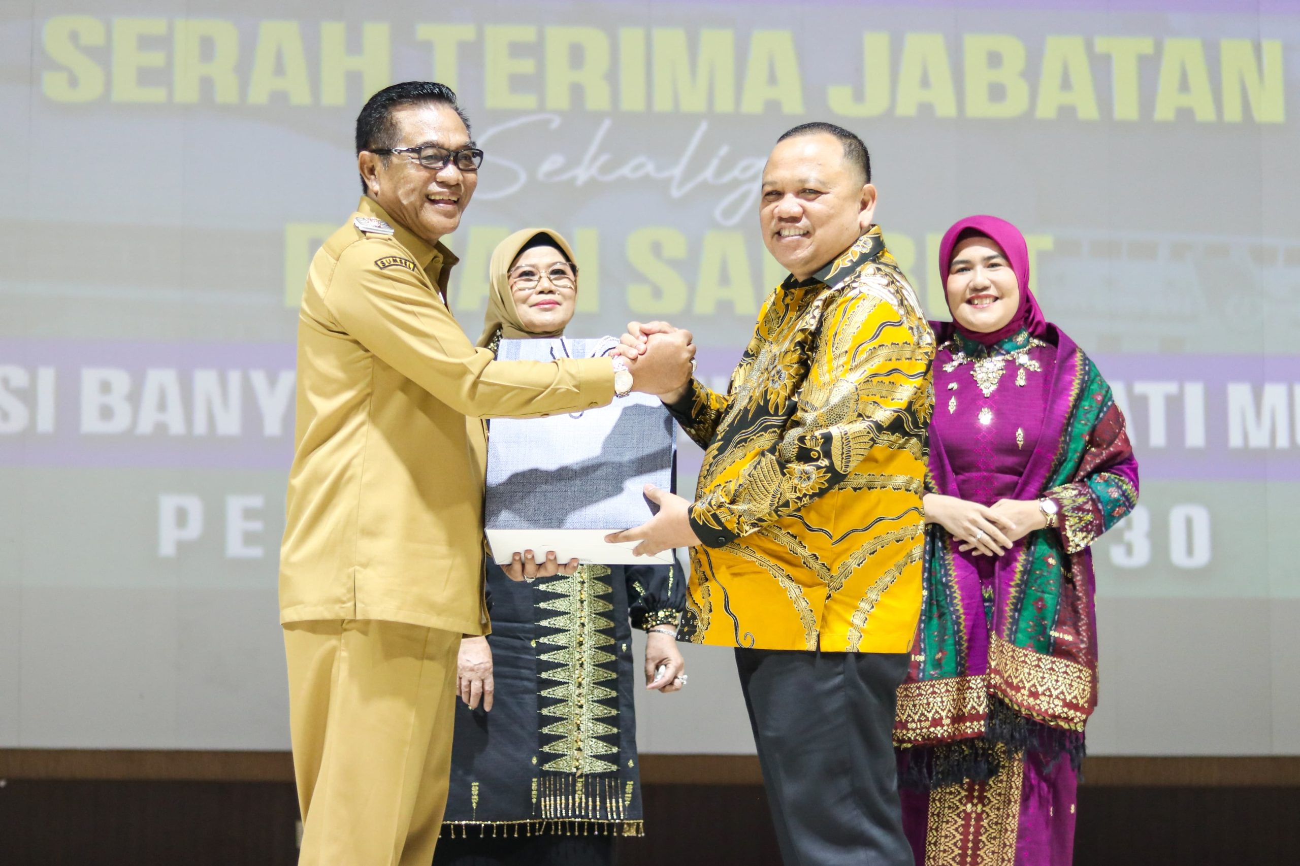 Pj. Bupati Muba, H. Sandi Fahlepi, secara resmi menyerahkan estafet kepemimpinan kepada Bupati terpilih, H M Toha SH, yang akan memimpin kabupaten bersama Wakil Bupati Rohman untuk periode 2025-2030.