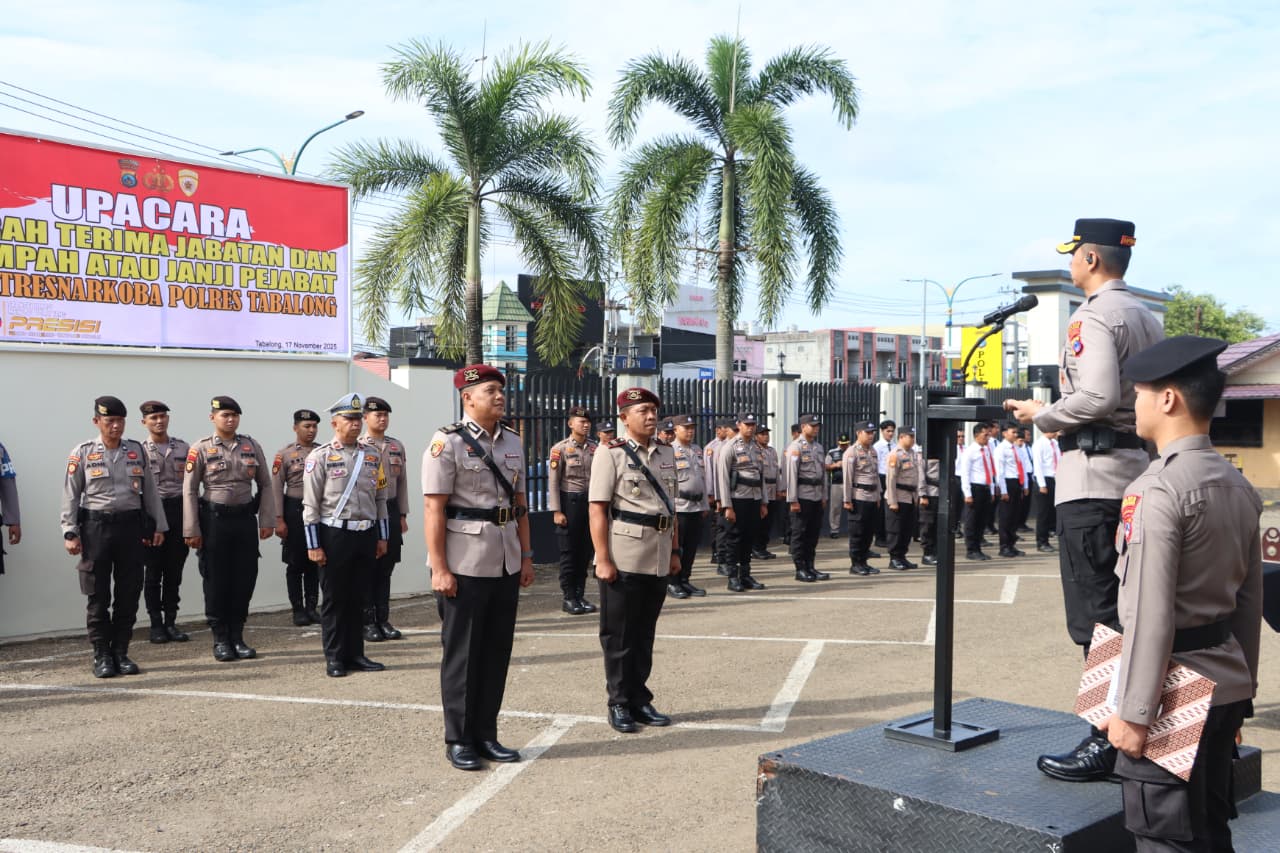Polres Tabalong menggelar upacara Serah Terima Jabatan (Sertijab) Kasat Reserse Narkoba di lapangan apel Polres Tabalong. Upacara tersebut menandai serah terima tugas dari AKP Abdullah, S.H., kepada IPTU Andi Prateknjo, S.H., pada Senin (17/11/2025) pagi.