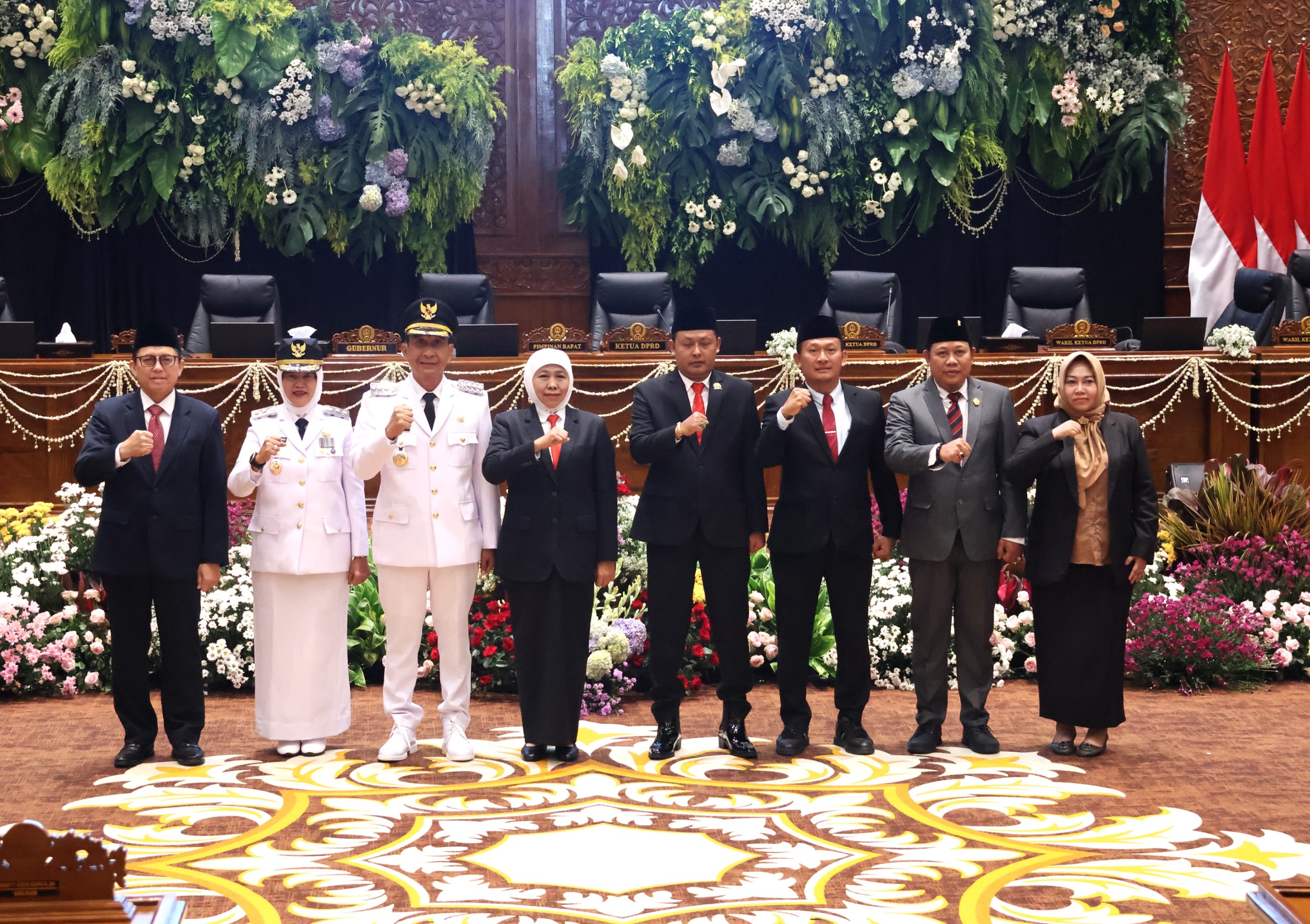 Acara sertijab ditandai dengan penandatanganan serah terima jabatan dan dilanjutkan Rapat Paripurna Istimewa penyampaian sambutan Bupati Bojonegoro periode 2025-2030.