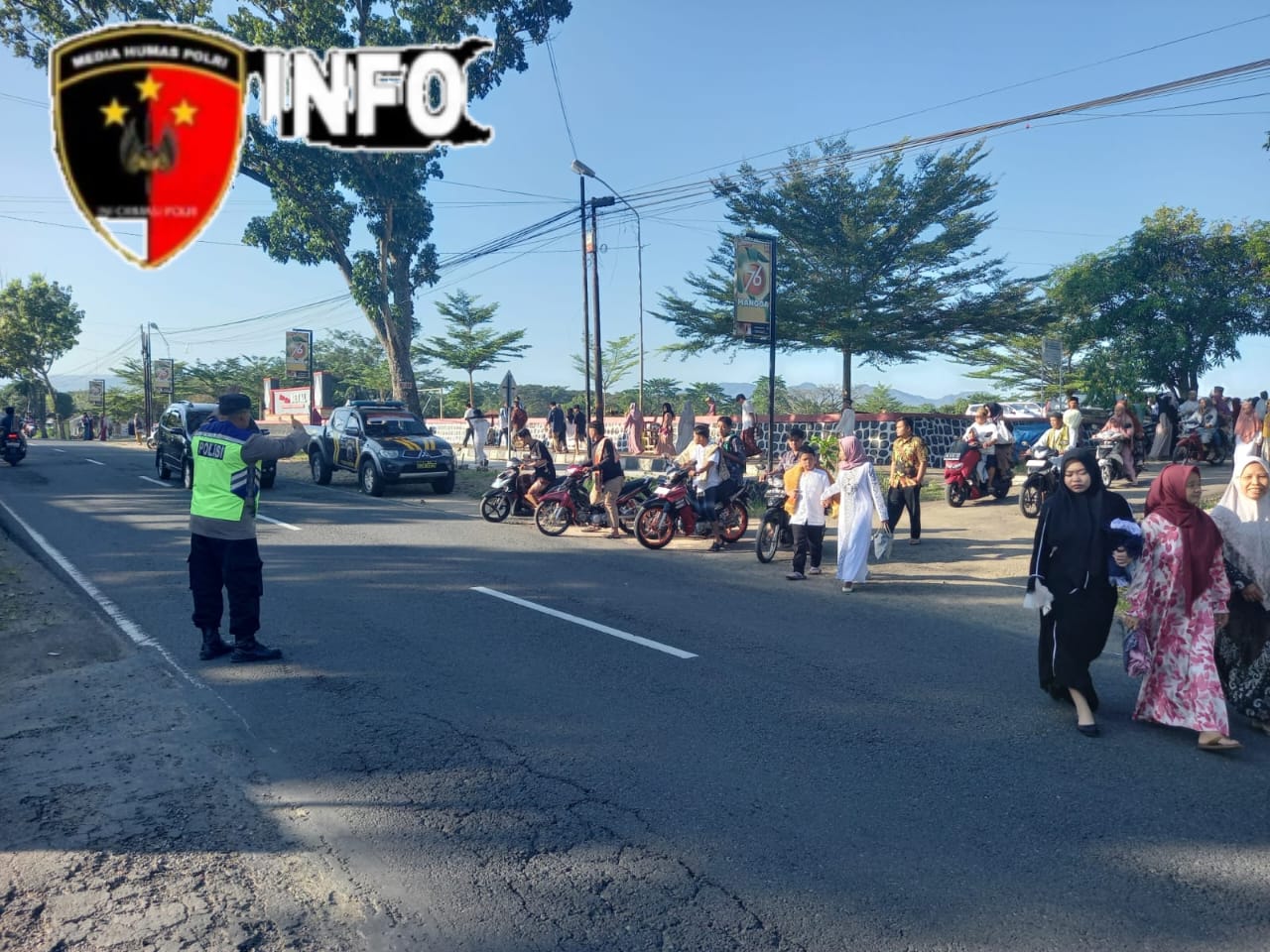 Guna menjamin keamanan dan ketertiban masyarakat saat pelaksanaan ibadah Sholat Idul Adha 1446 H, jajaran Polres Wonogiri terjunkan 269 personil pengamanan disejumlah titik solat Idul Adha yang tersebar di wilayah Kabupaten Wonogiri, (6/6/2025).