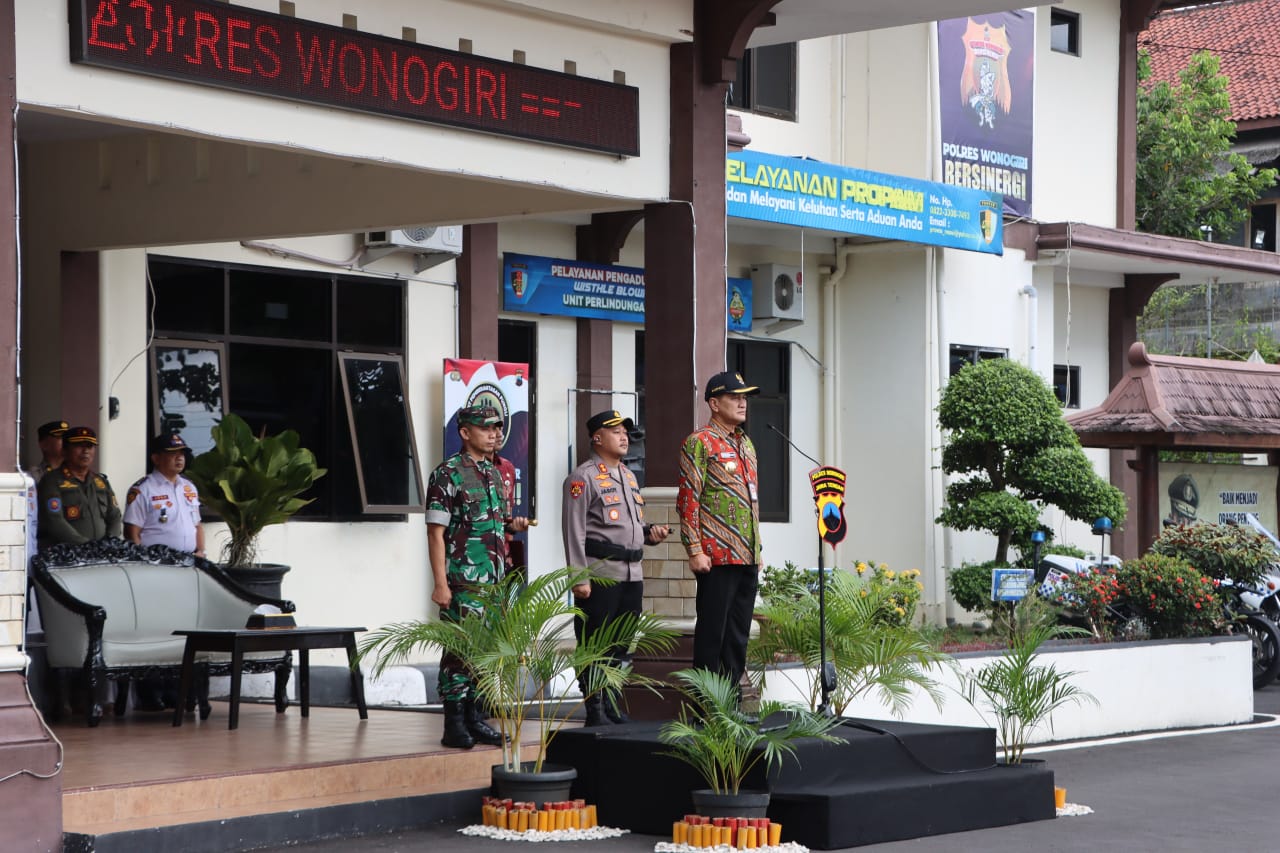 Selaku pimpinan apel, didampingi Kapolres Wonogiri dan Dandim 0728/Wonogiri, Bupati Wonogiri Setyo Sukarno membacakan amanat dari Kapolri yang mengatakan, bahwa apel gelar pasukan ini merupakan bentuk kesiapan pengamanan untuk memastikan pelaksanaan Hari Raya Idul Fitri 1446 H berjalan aman lancar. Mulai dari pelaksanaan mudik maupun arus balik, dan pengamanan selama libur lebaran.