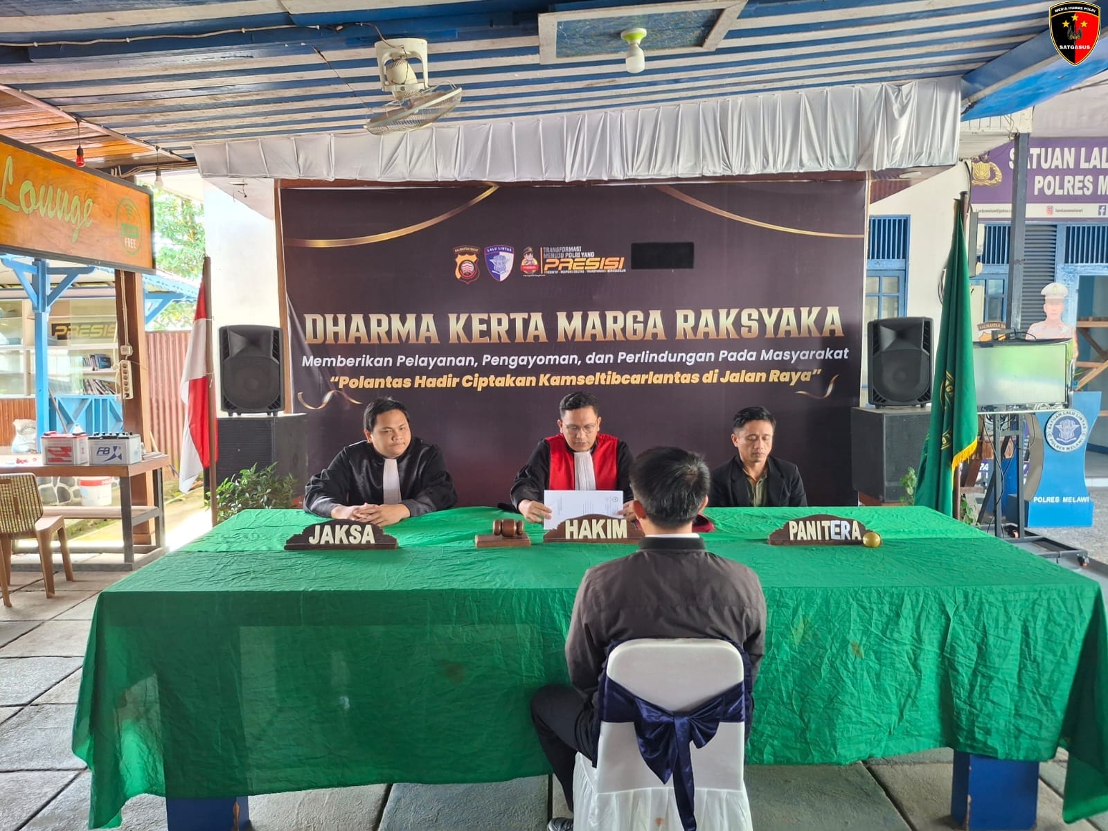 “Pukul 10.30 WIB bertempat di Satpas Lantas Polres Melawi telah dilakukan sidang tilang, Hakim Sastra Lumbantoruan, S.H., M.H, Jaksa Guswandi, S.H, dan Panitera sidang Fahri Sundah, S.H., M.H, sebanyak 63 berkas di sidangkan,” ujar Kasat Lantas.