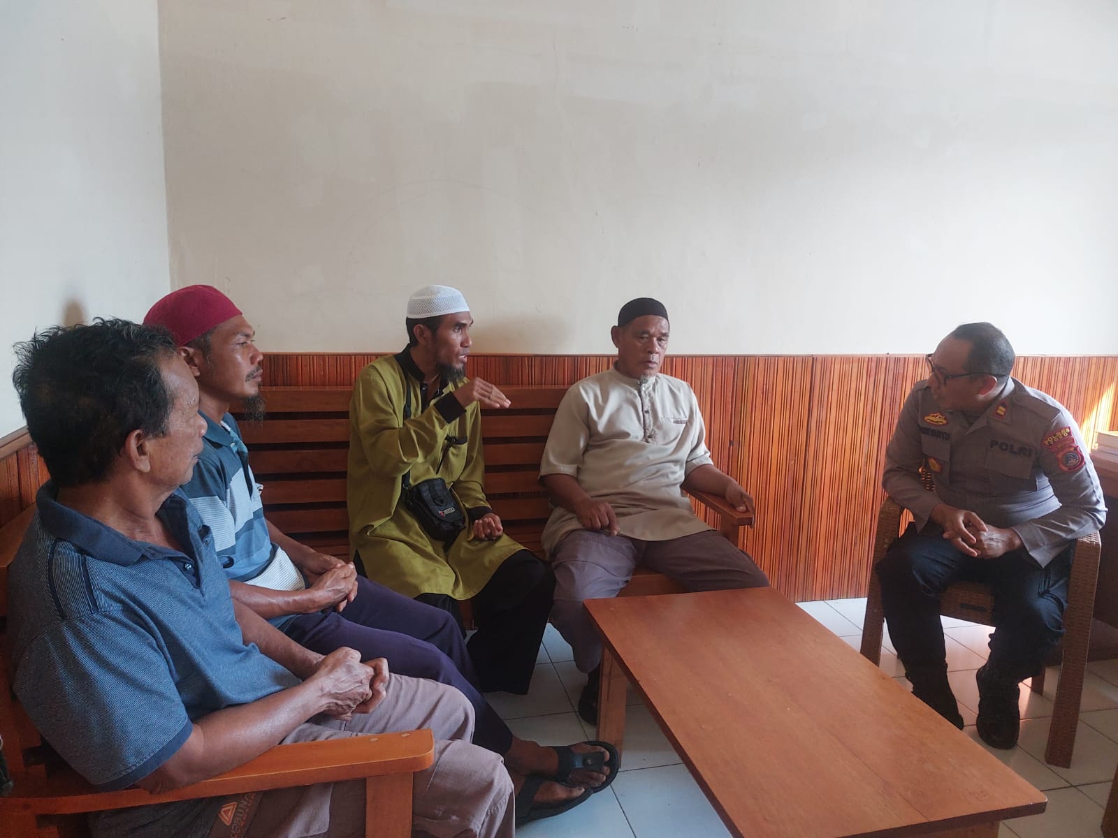 Kapolsek Poso Pesisir, Iptu Risdianto, menyambut kunjungan sejumlah tokoh penting, di antaranya Ustad Abdullah selaku Tokoh Agama, Hammadong selaku Tokoh Masyarakat, dan Sigoarto selaku Tokoh Agama di Mako Polsek Poso Pesisir, Kelurahan Maane, Kecamatan Poso Pesisir.
