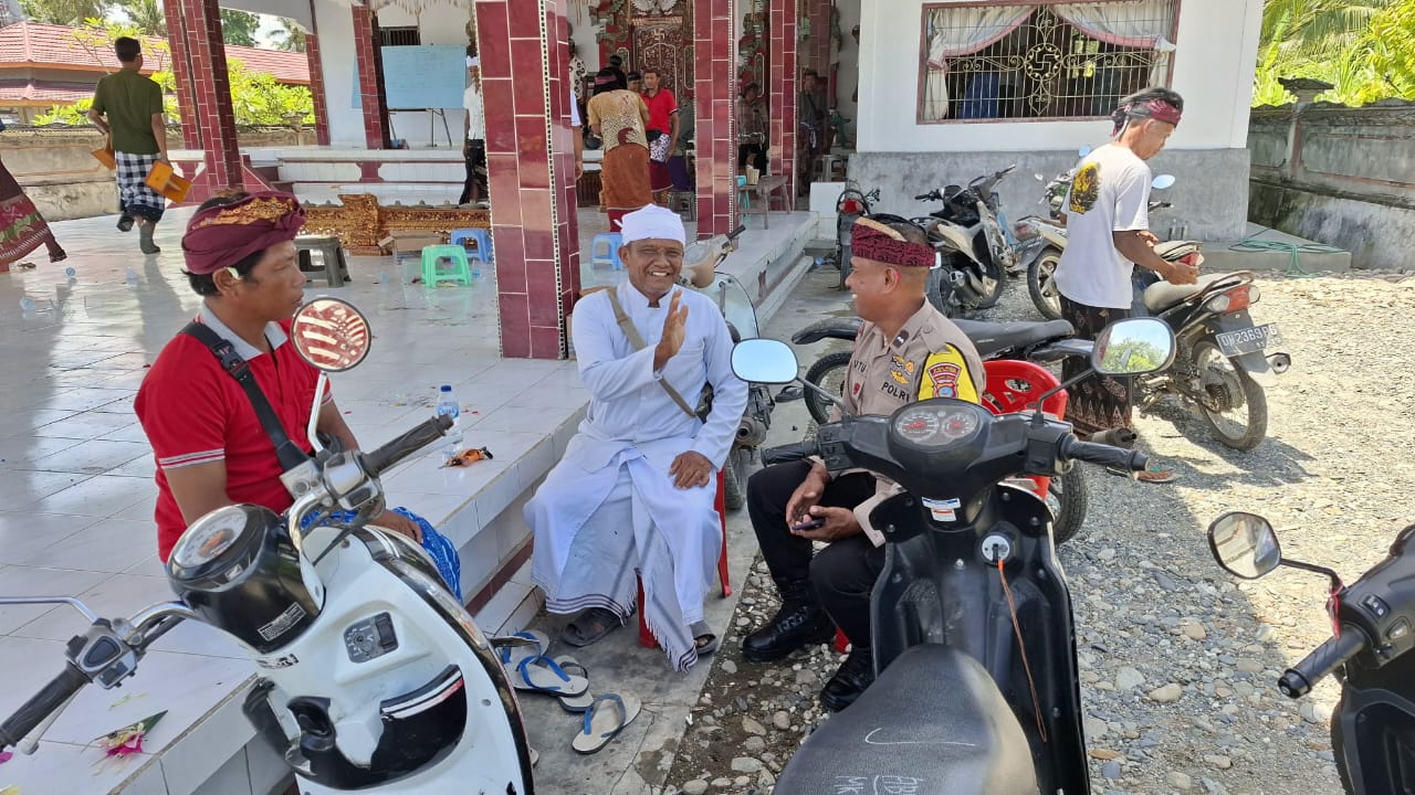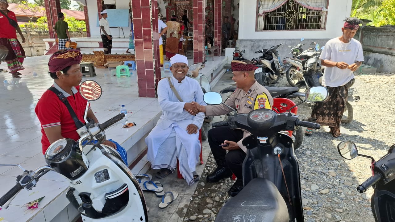 Dalam kesempatan tersebut, Aipda I Putu Kariasa bersama Mangku I Ketut Marta mengimbau warga untuk tetap menjaga kerukunan dan menghindari pengaruh berita hoax yang dapat memicu perpecahan.
