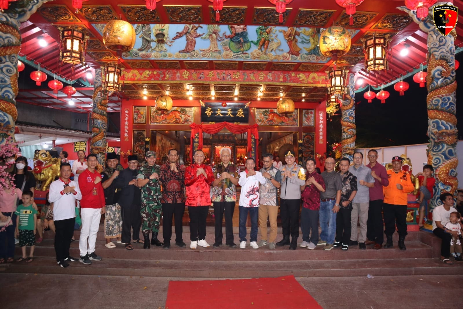 Kegiatan tersebut diwarnai dengan berbagai pertunjukan seni dan budaya, seperti barongsai, tarian tradisional, dan pertunjukan aksi naga yang turut memeriahkan suasana malam itu. Warga yang hadir terlihat antusias menyaksikan setiap pertunjukan, sementara jajaran kepolisian dan aparat setempat menjaga keamanan acara agar tetap berjalan dengan lancar.