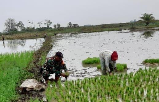 Sinergi Babinsa dan Petani Tanam Padi Musim Tanam II di Kayu Rabah
