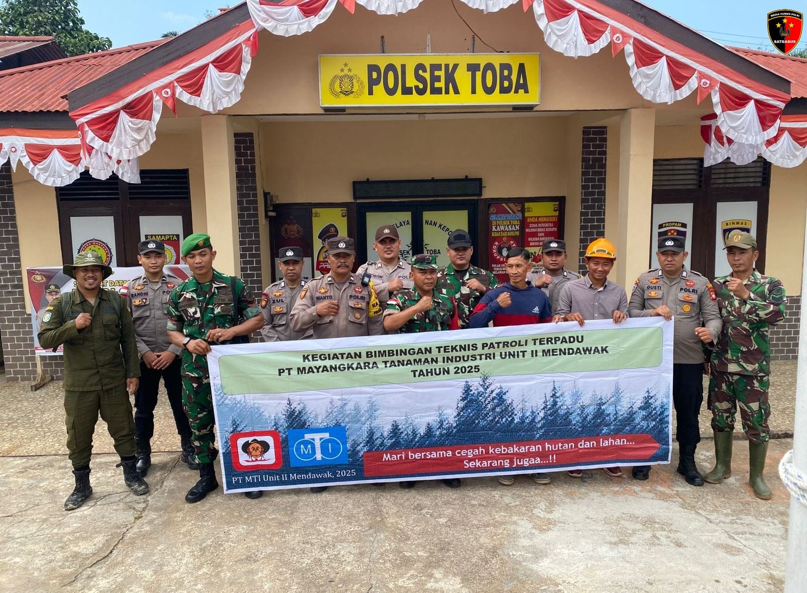 Dalam upaya menanggulangi potensi kebakaran hutan dan lahan (Karhutla) di wilayah hukum Polsek Toba, aparat gabungan yang terdiri dari TNI, Polri, UPT KPH Sanggau Barat, dan perusahaan swasta menggelar apel kesiapan serta patroli terpadu pada Jumat pagi (25/7).
