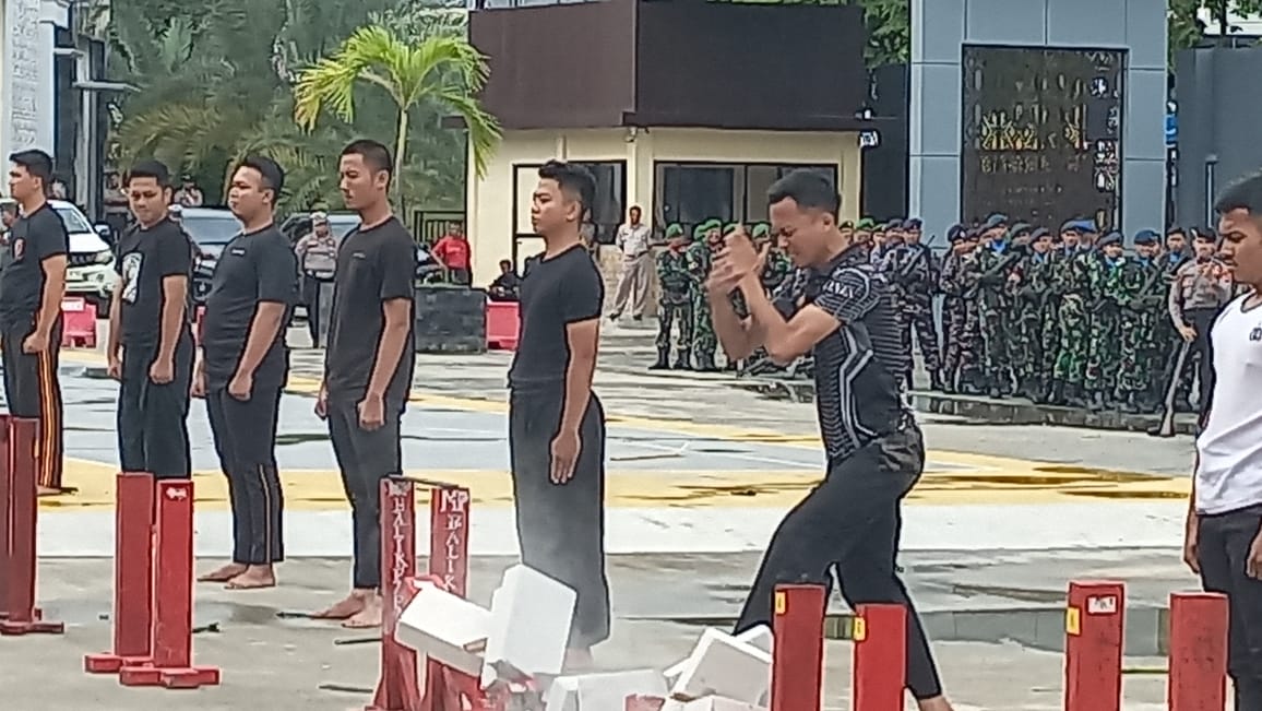Tidak hanya itu, personel Polresta Balikpapan juga menampilkan demonstrasi kemampuan bela diri Polri, yang menunjukkan ketangkasan dan kesiapsiagaan dalam menghadapi berbagai situasi tugas di lapangan.
