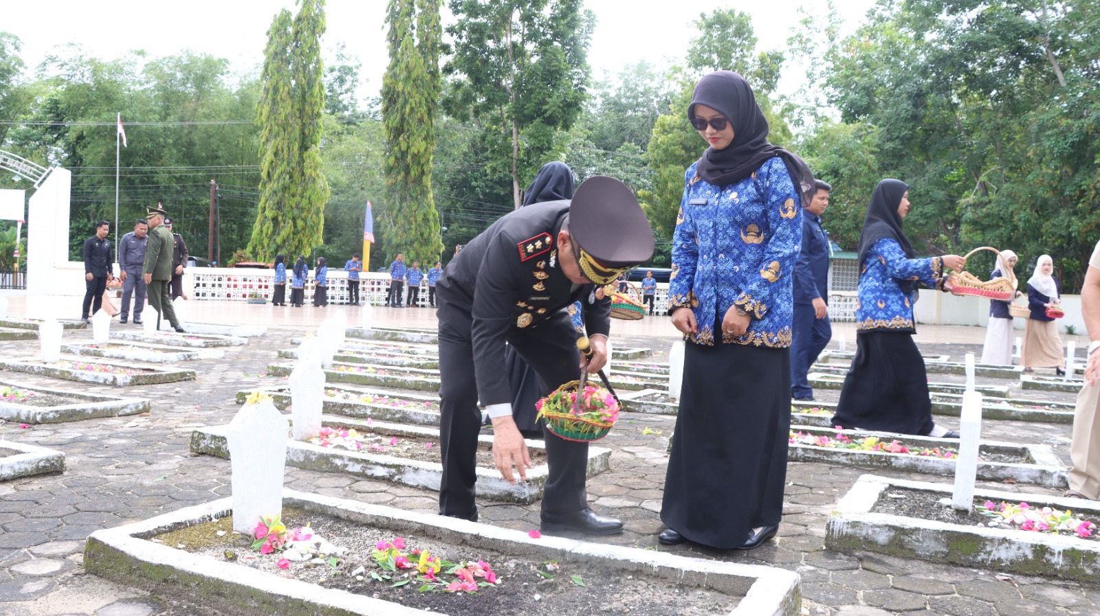 Puncak dari rangkaian acara adalah prosesi Tabur Bunga yang menyentuh hati. Bupati HSU memimpin penaburan bunga di pusara para pahlawan, diikuti oleh Kapolres HSU dan seluruh jajaran Forkopimda serta peserta upacara lainnya. Tindakan ini merupakan simbol pengabdian, penghormatan abadi, dan janji untuk meneruskan cita-cita perjuangan mereka.
