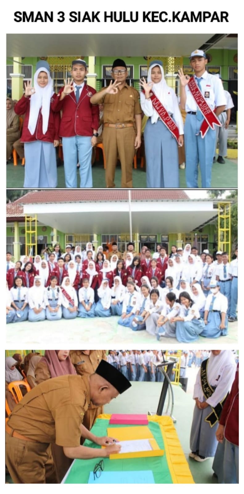 Pada hari Senin tanggal 13 Oktober 2025 SMAN 3 Siak Hulu menggelar Pelantikan Anggota Majelis Perwakilan Kelas (MPK), Organisasi Siswa Intra Sekolah (OSIS) dan Anggota Patroli Keamanan (PK) Sekolah. Acara digelar dipimpin langsung Kepala Sekolah Agus Sutiyono, S.H, bertempat di Halaman SMAN 3 Siak Hulu. Acara pelantikan ini, juga dihadiri para majelis Guru, Staf TU serta ratusan siswa siswi SMAN 3 Siak Hulu.”