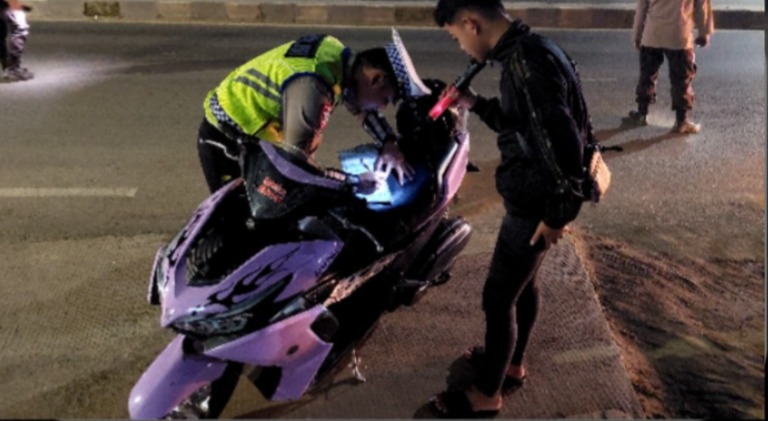 Pengawasan Intensif: Personil melakukan razia kendaraan roda dua (R2) dan roda empat (R4) yang melintas di area UPPKB Talang Kelapa, mengantisipasi potensi gangguan Kamtibmas, kejahatan jalanan (3C), peredaran narkoba, senjata tajam (sajam), senjata api (senpi), dan tindak pidana lainnya.